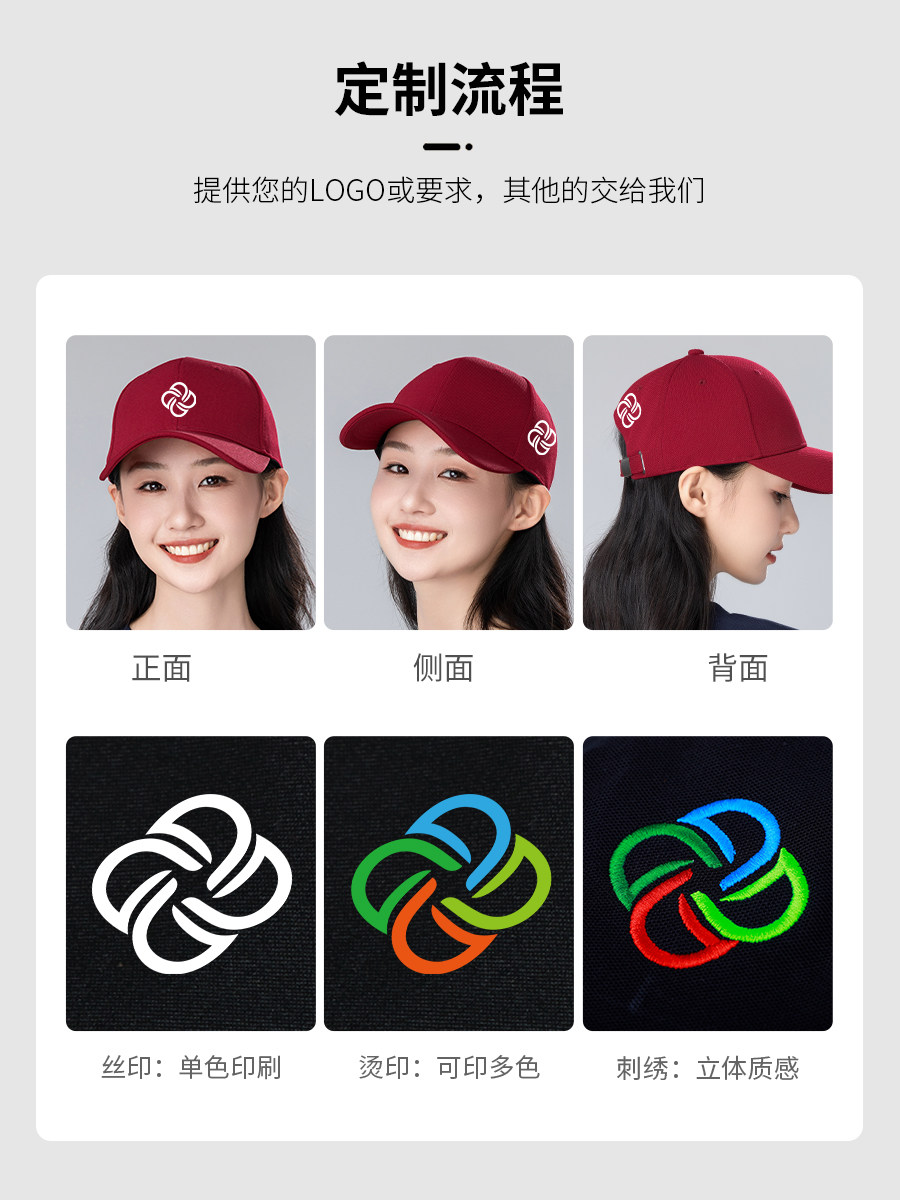 纯棉鸭舌帽子定制logo印字日常搭配广告棒球工作帽多功能帽子刺绣