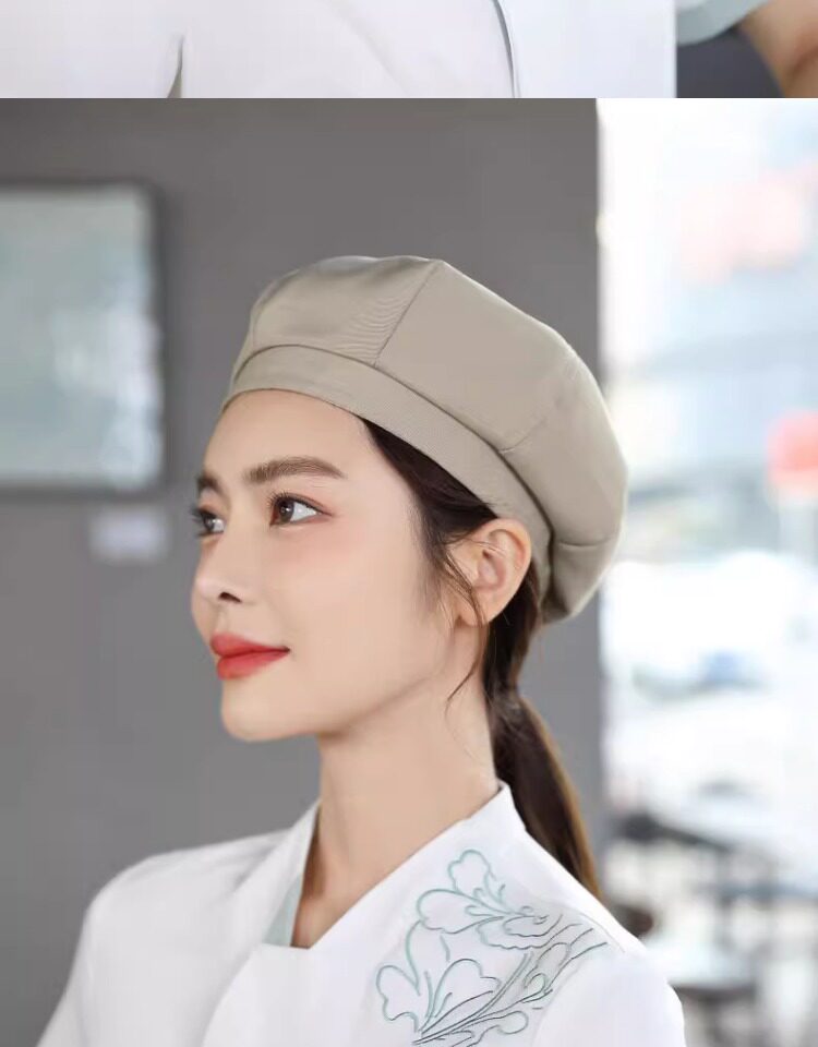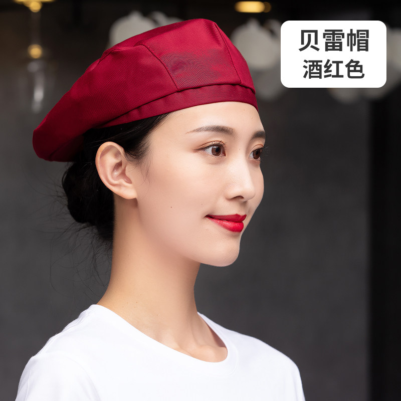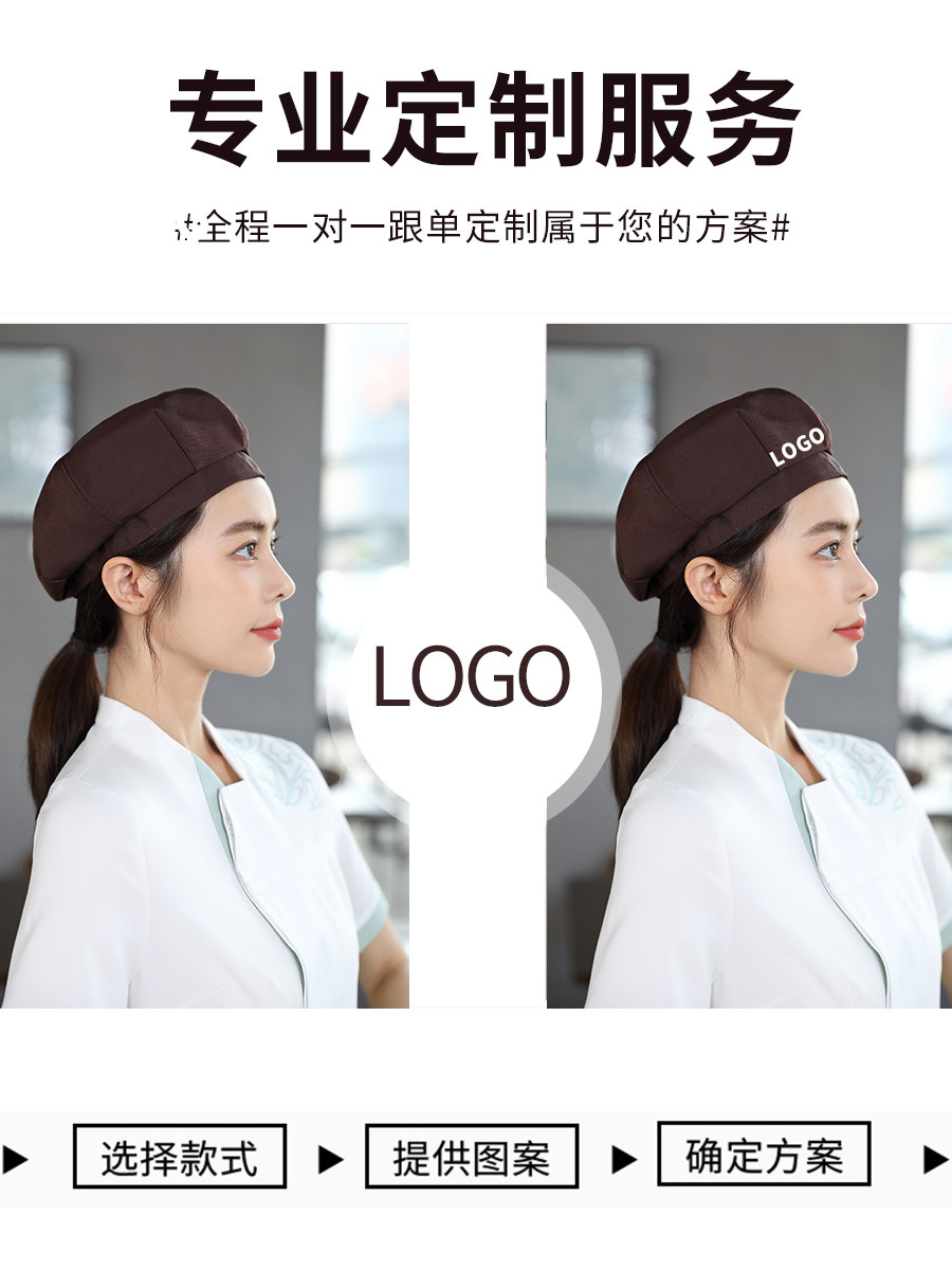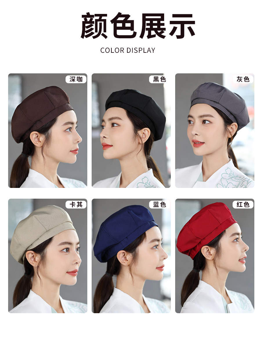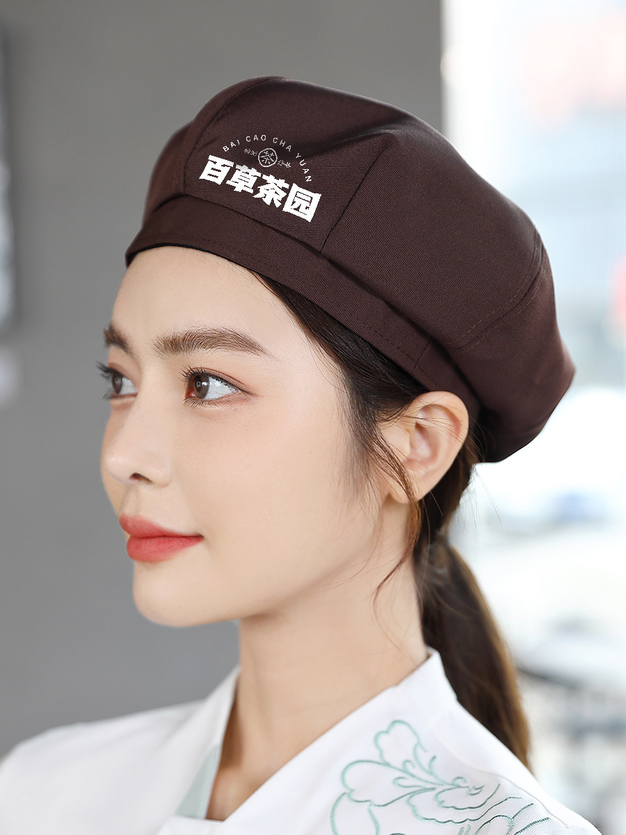 餐饮工作帽子定制logo奶茶店烘焙服务员厨房防掉发油烟厨师贝雷帽