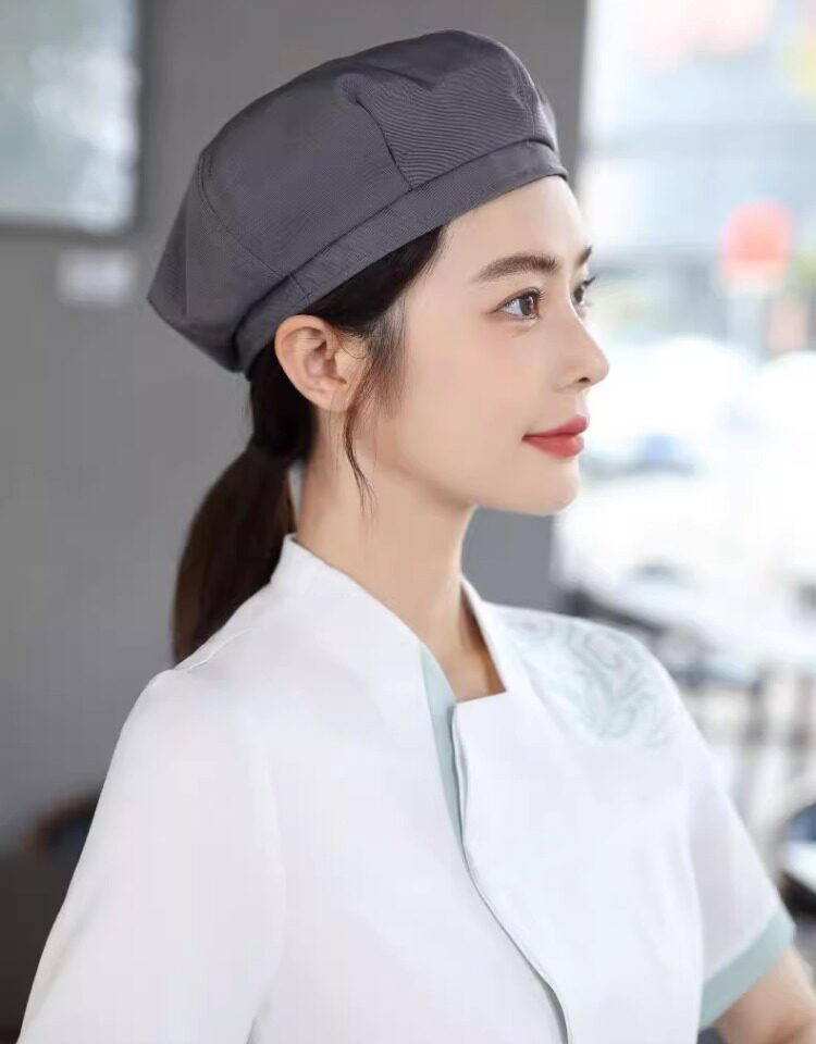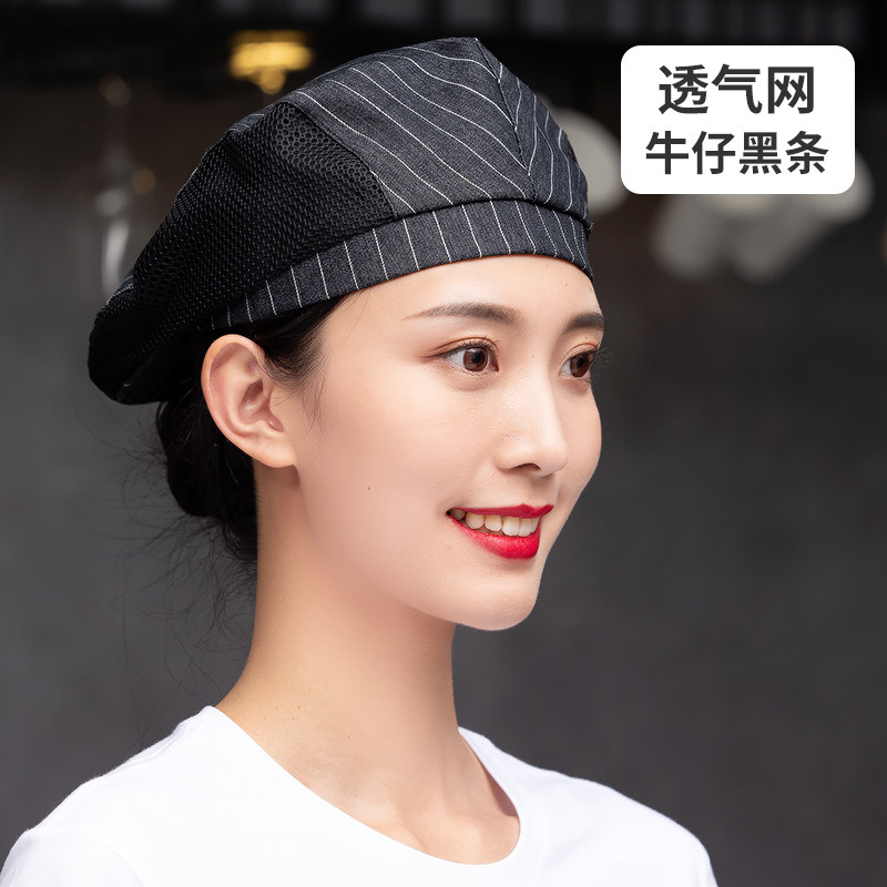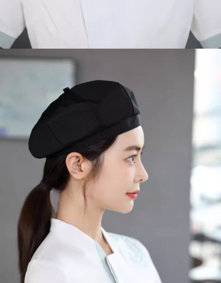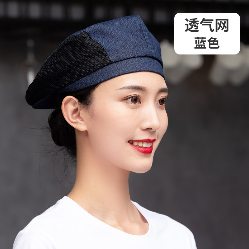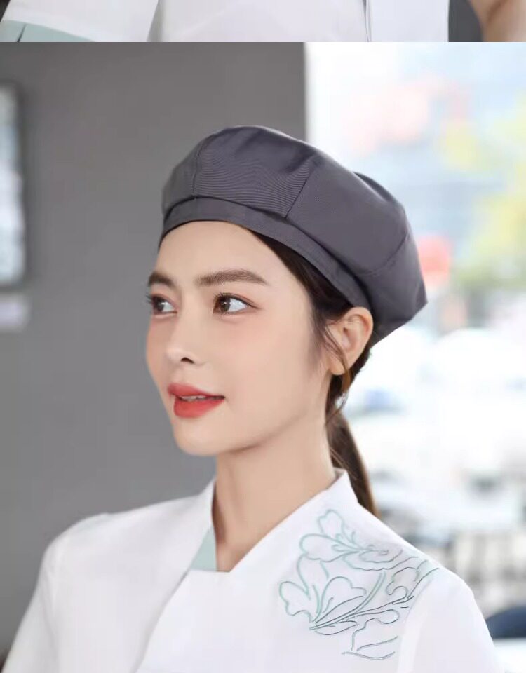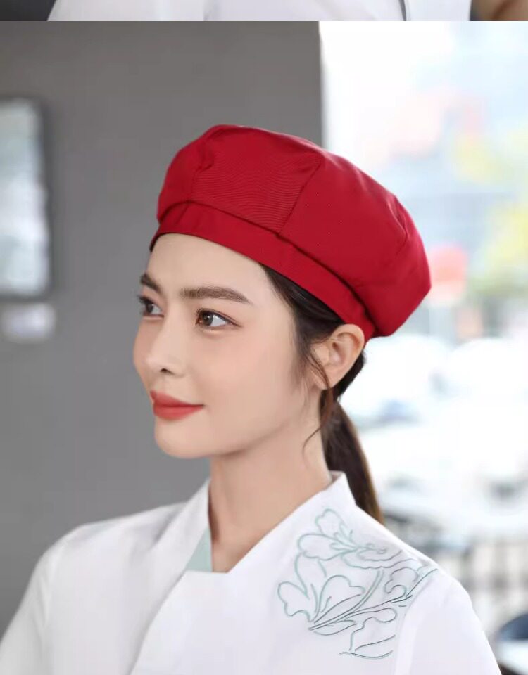 餐饮工作帽子定制logo奶茶店烘焙服务员厨房防掉发油烟厨师贝雷帽