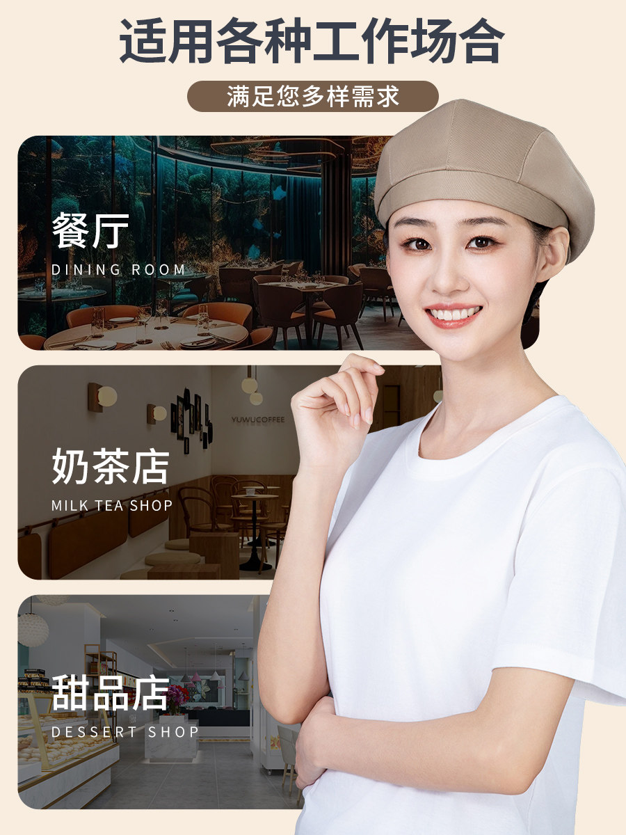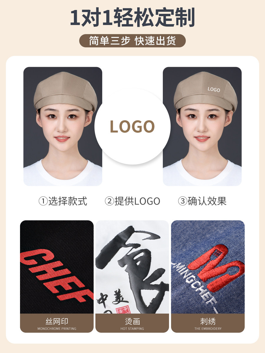 蛋糕店帽子定制logo印字餐饮专用烘焙房茶艺师服务员防掉发贝雷帽