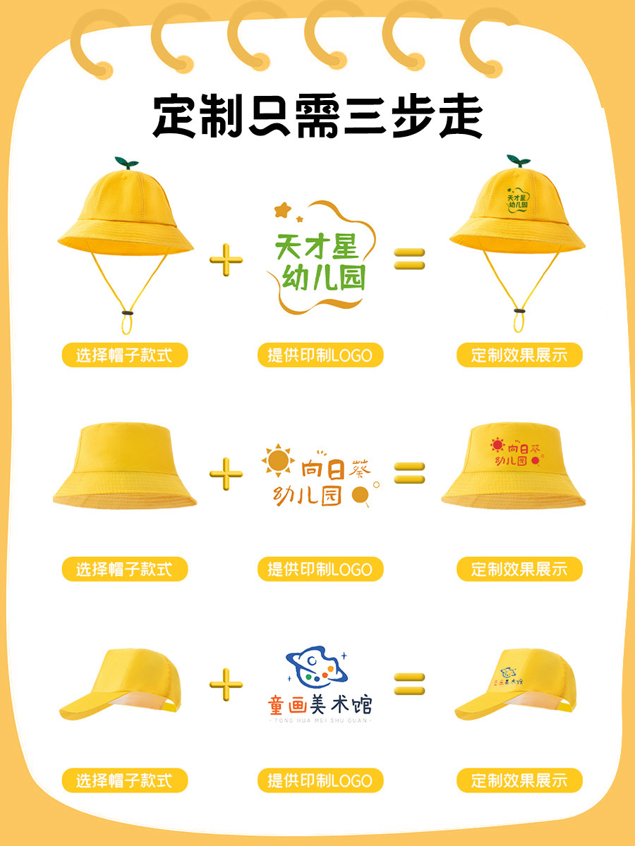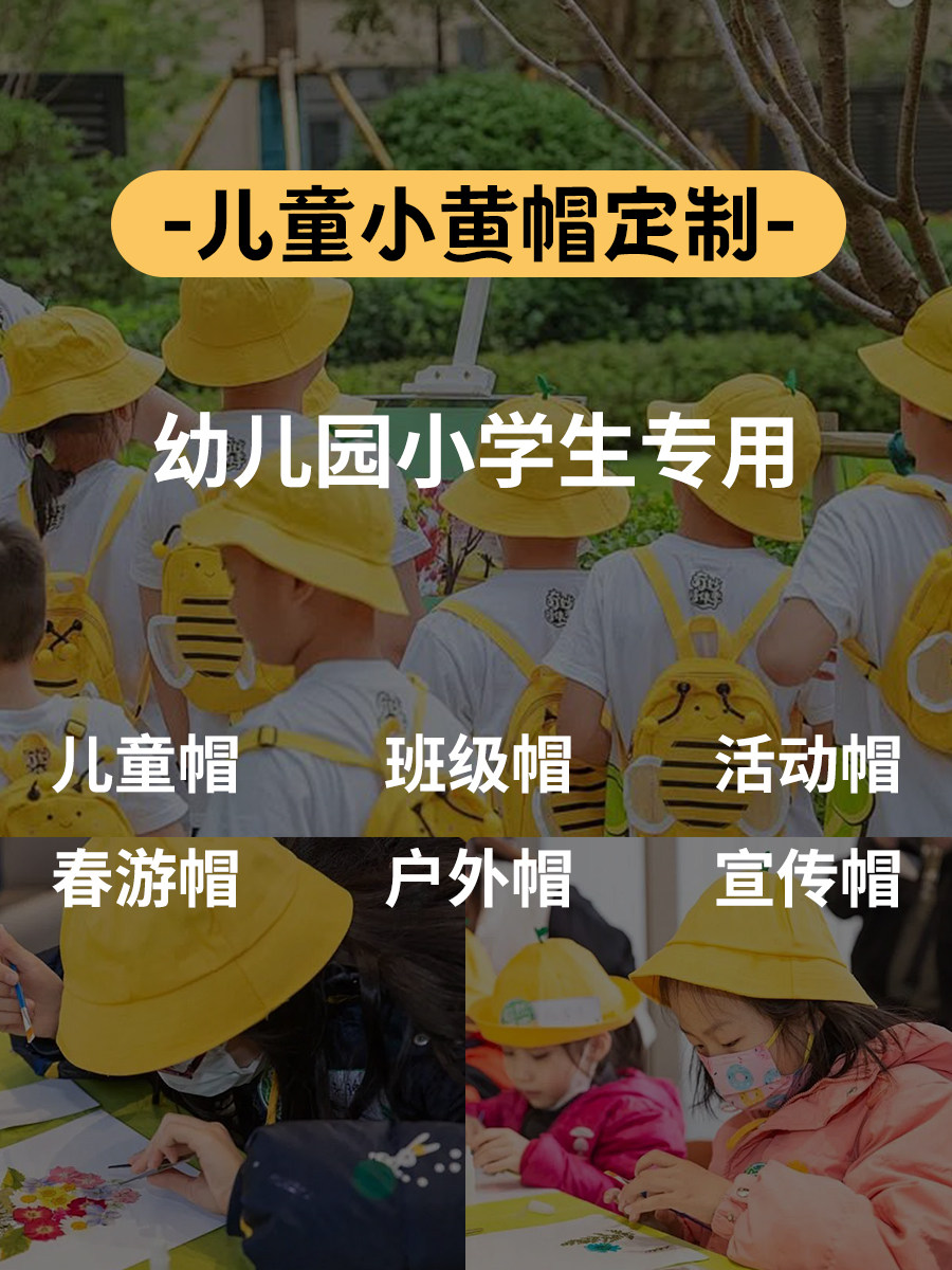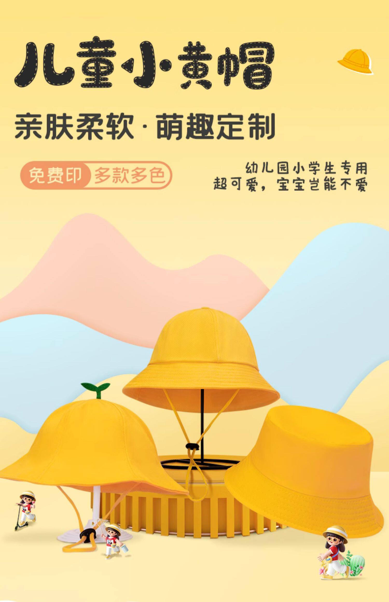 小黄帽幼儿园帽子定制户外春游小学生专用韩版日系防晒遮阳渔夫帽