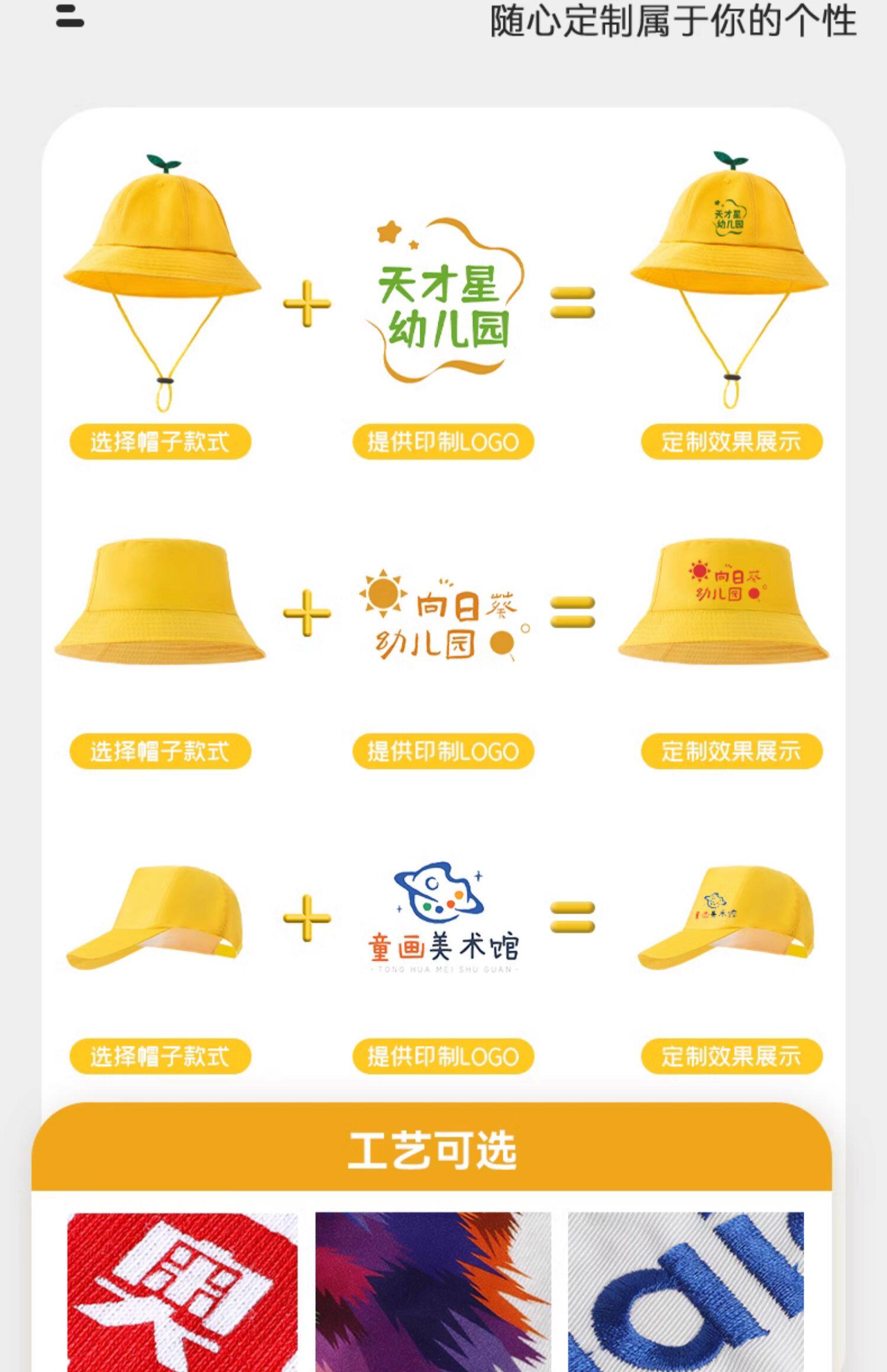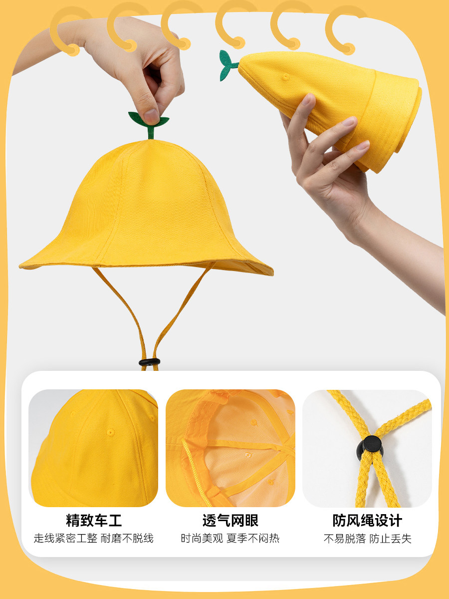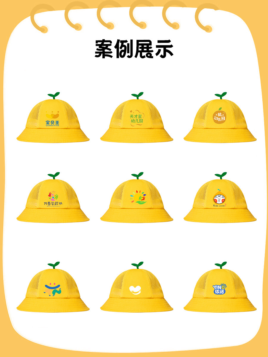 小黄帽幼儿园帽子定制户外春游小学生专用韩版日系防晒遮阳渔夫帽