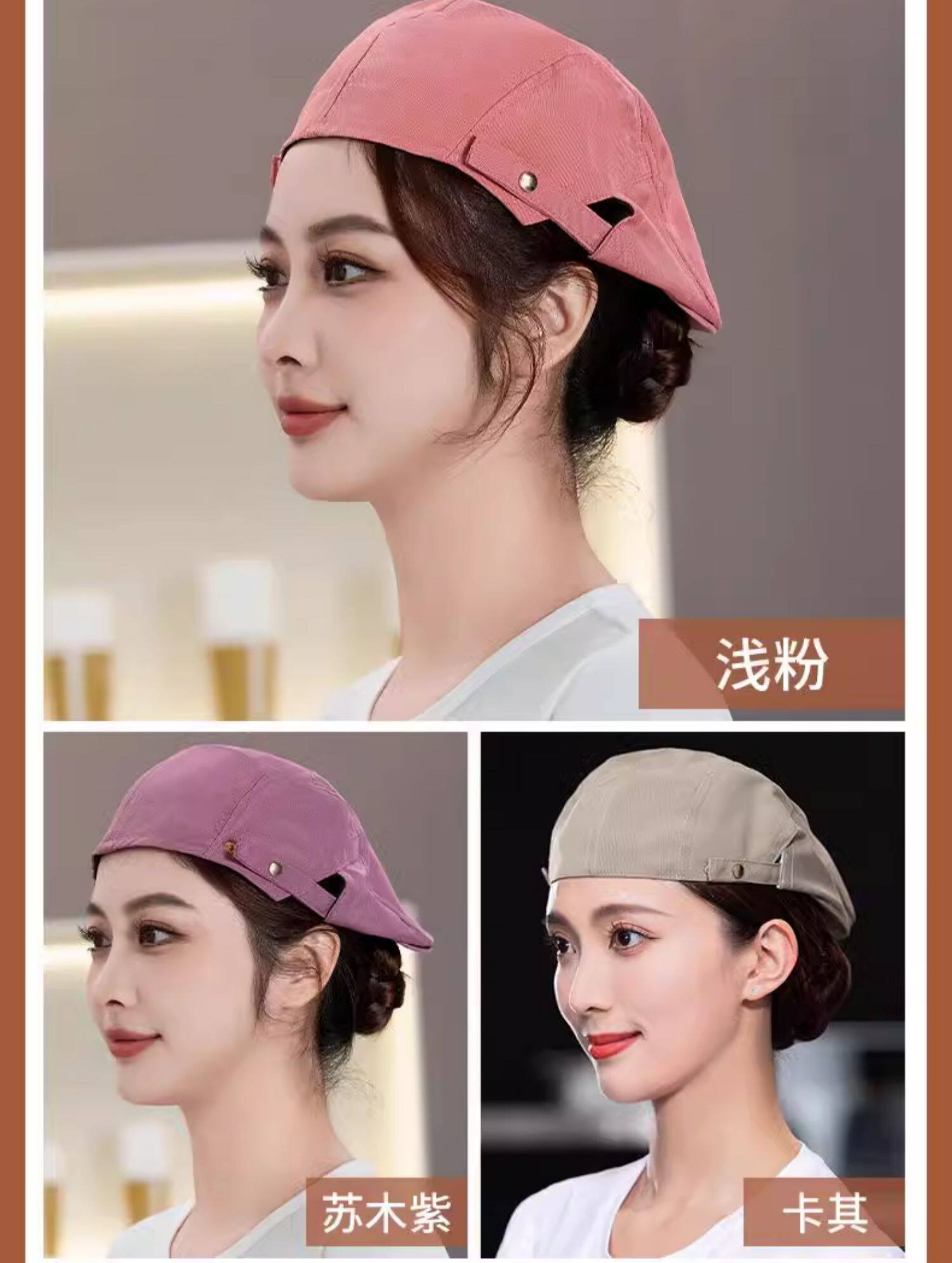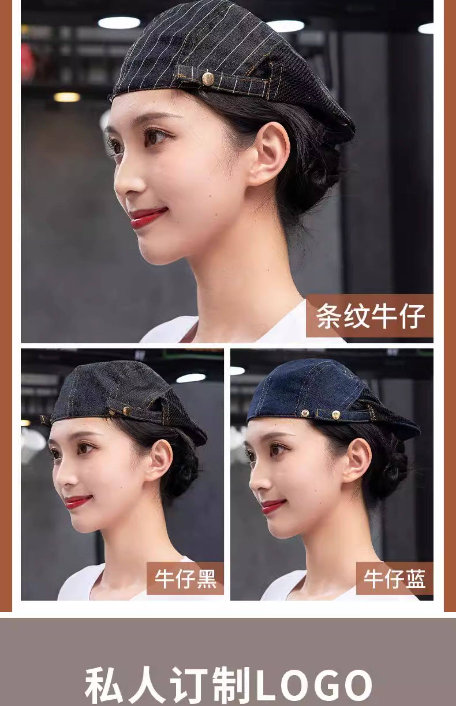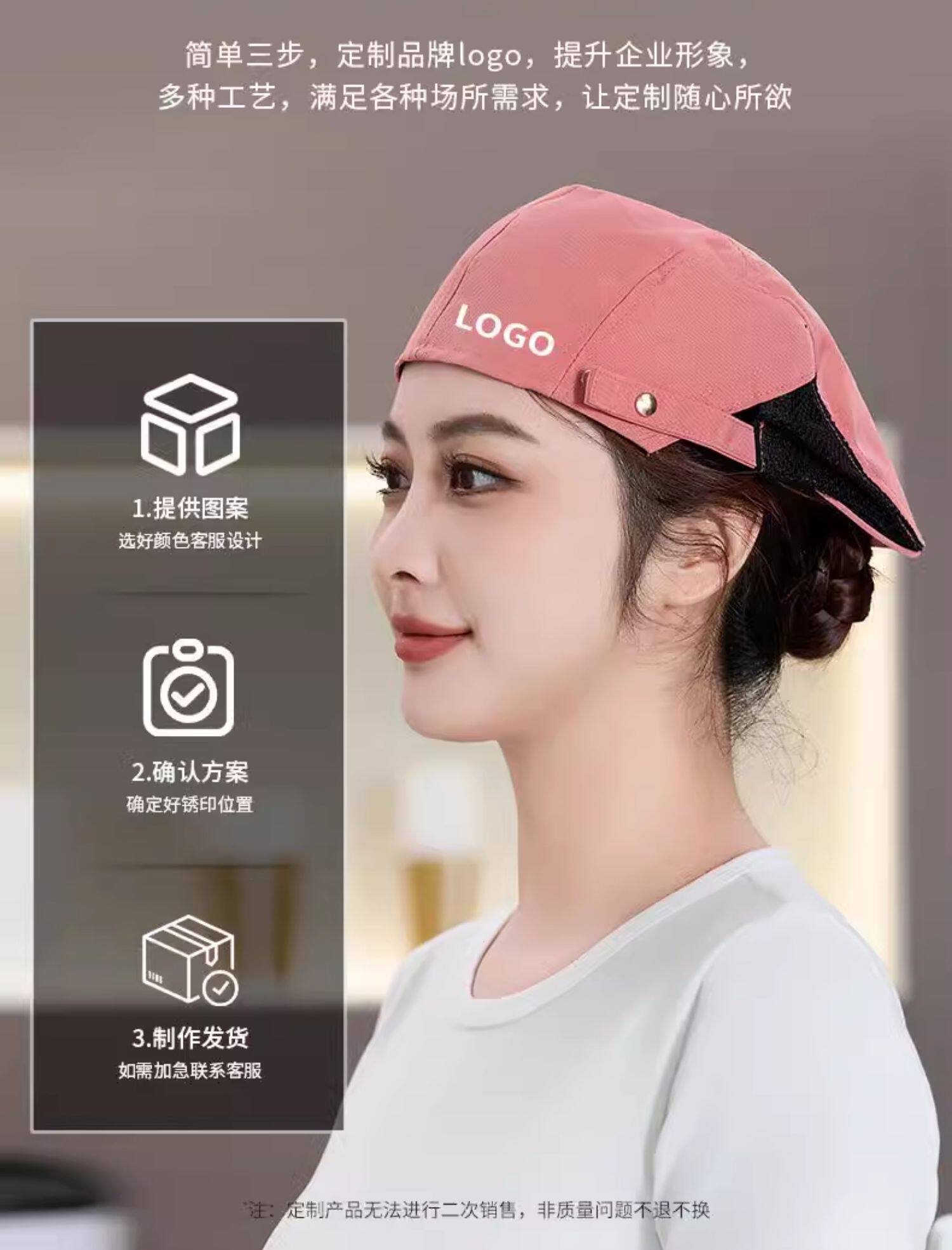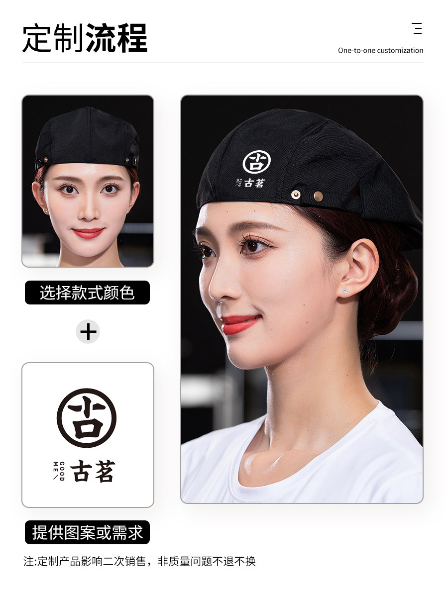 奶茶店餐饮专用帽子定制logo印字餐厅饭店厨房防掉发厨师工作帽女