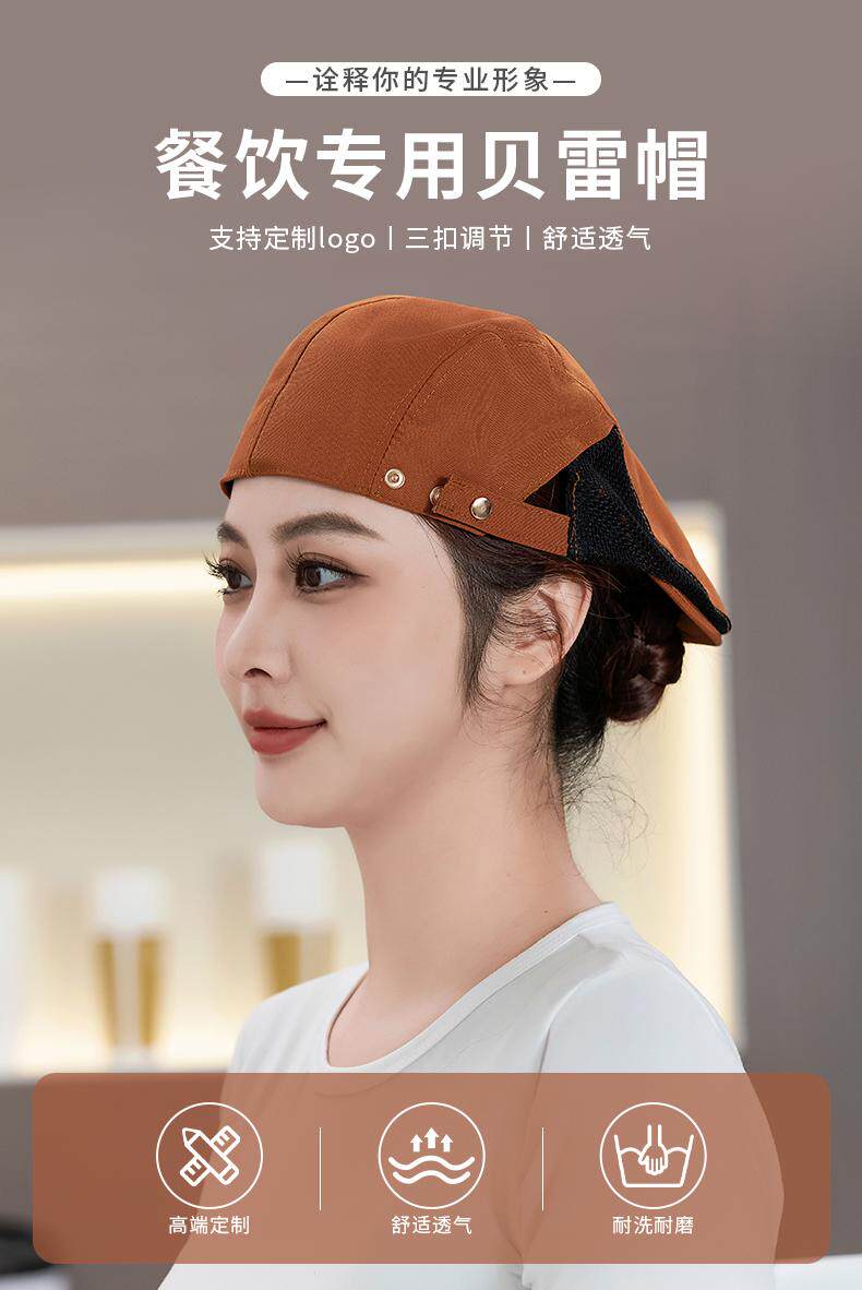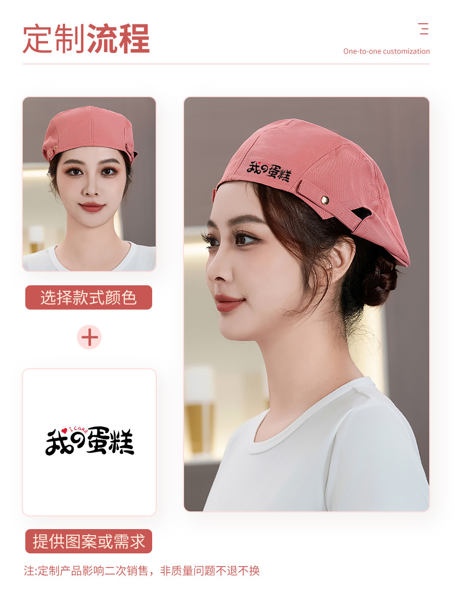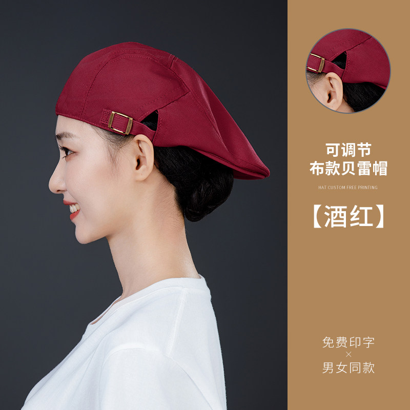 餐饮专用厨师工作帽子定制logo印字奶茶蛋糕店厨房防掉发贝雷帽女