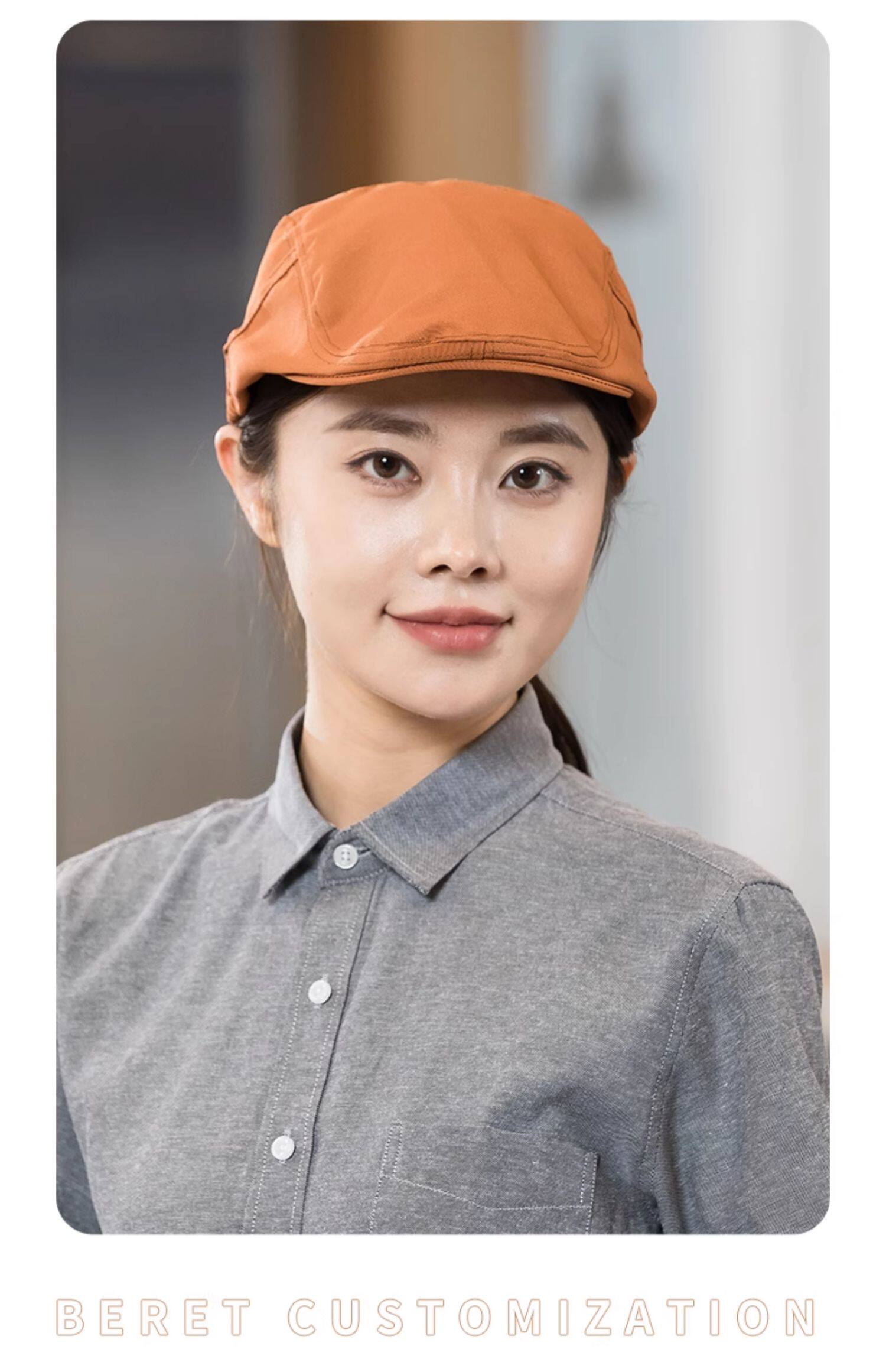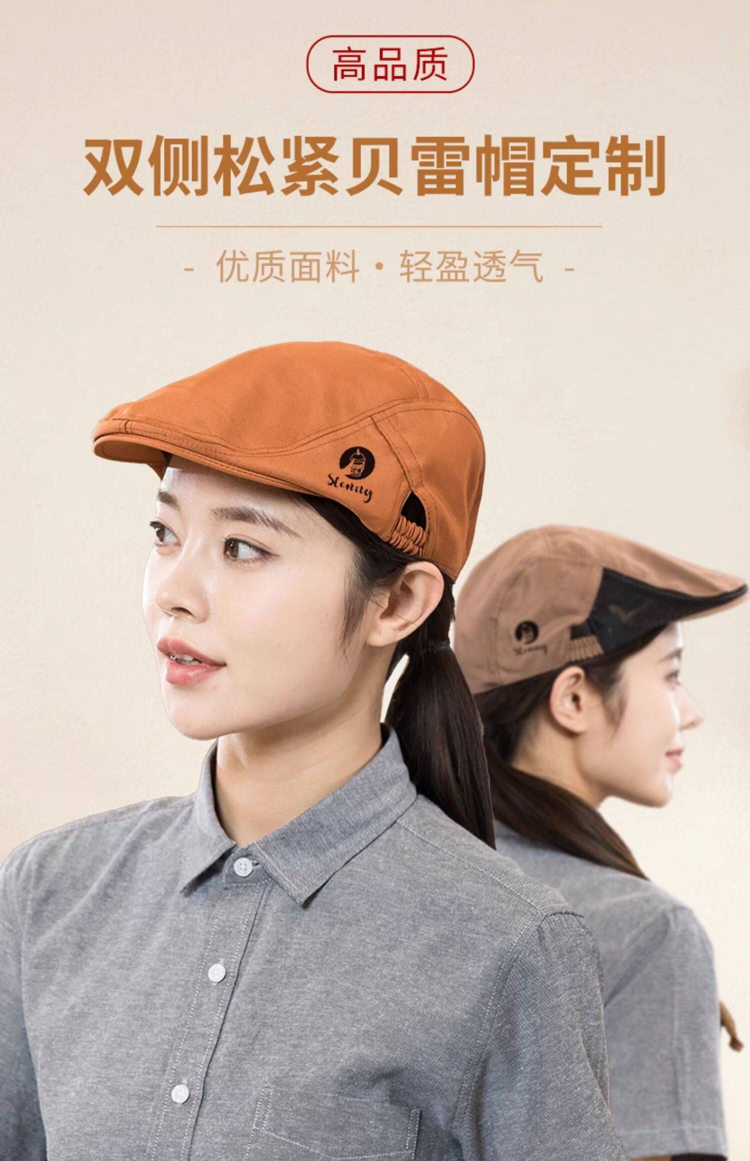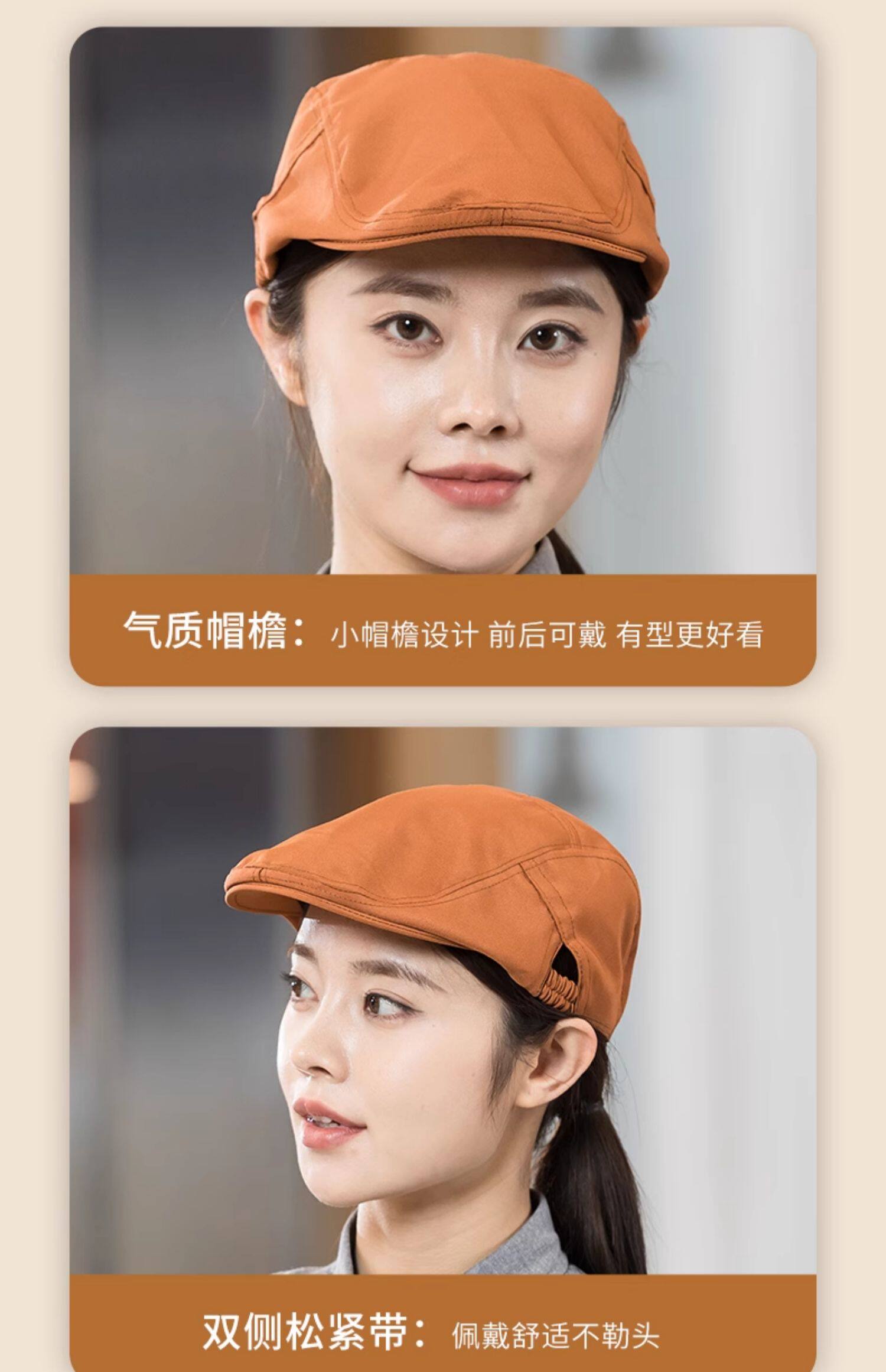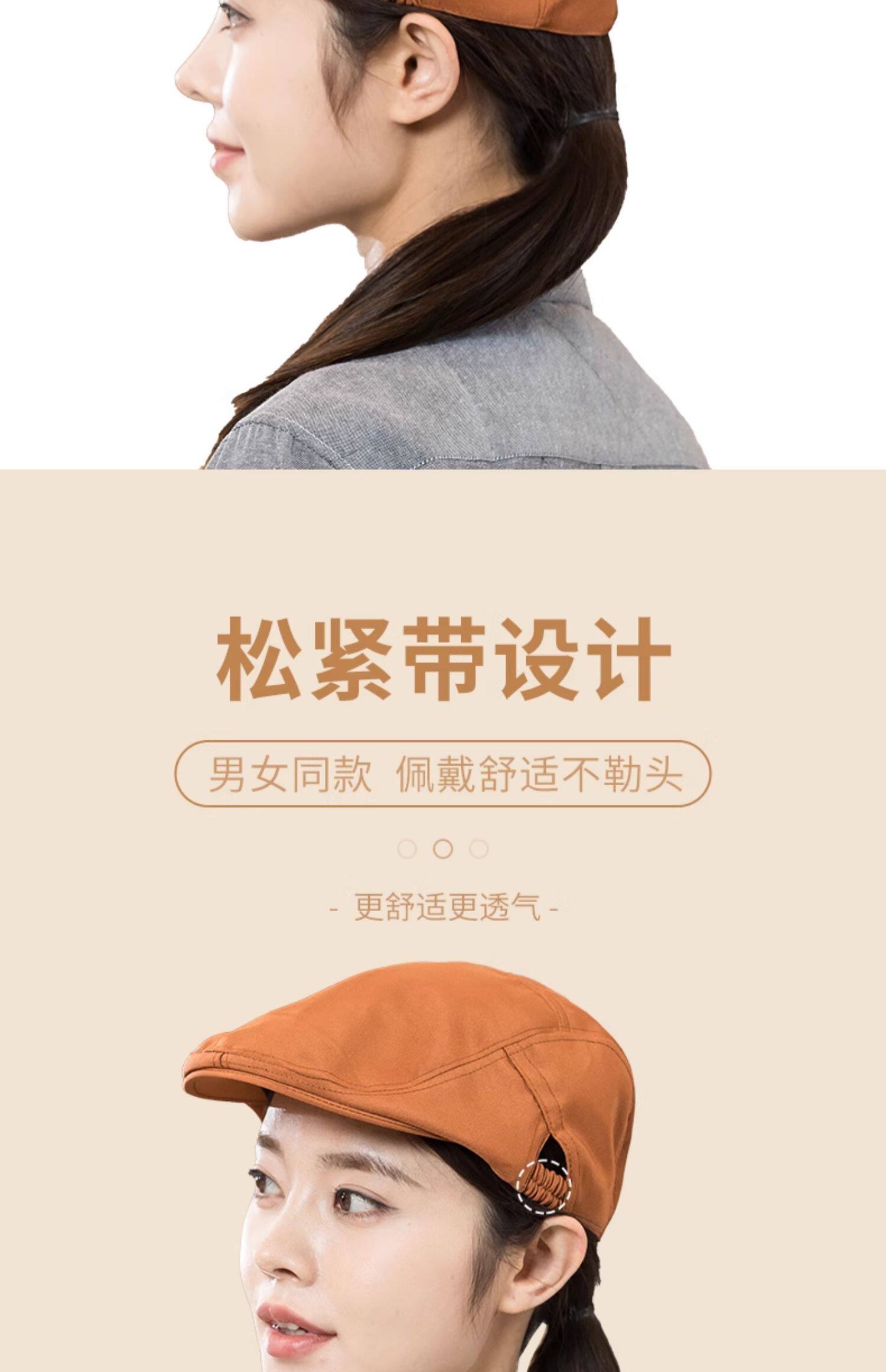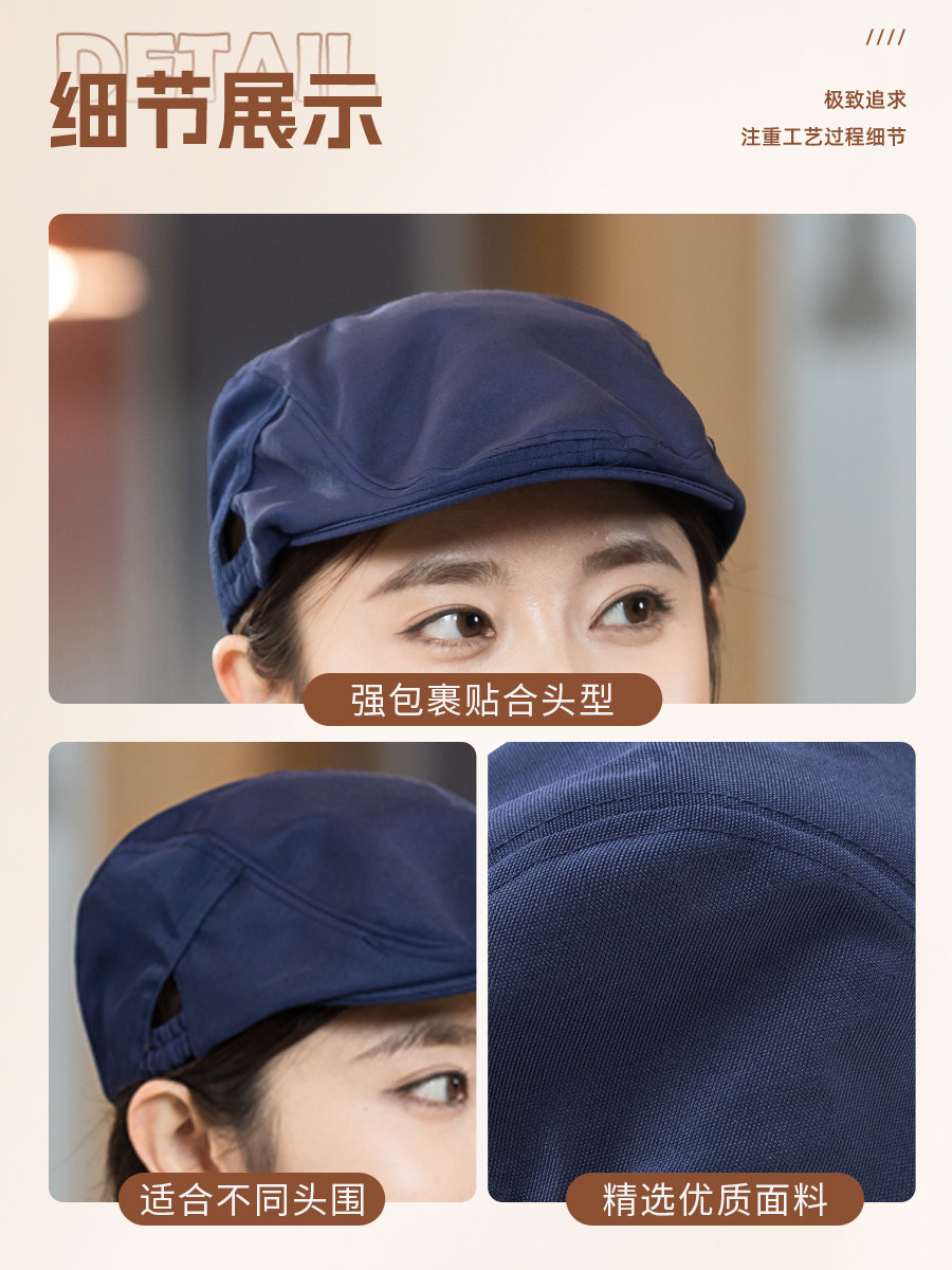 餐饮专用工作帽子蛋糕咖啡奶茶店服务员贝雷帽厨房防掉发厨师帽女