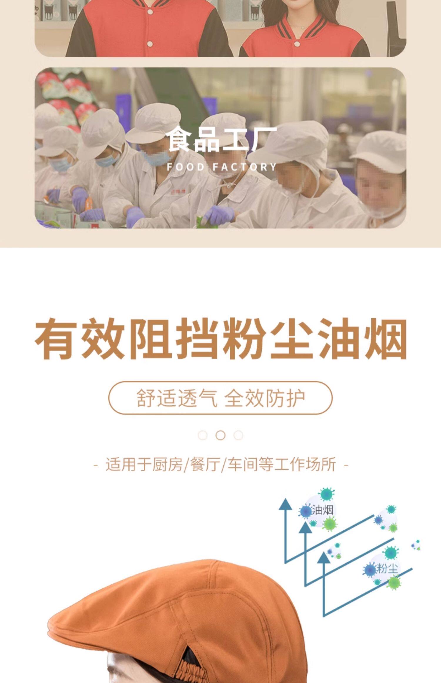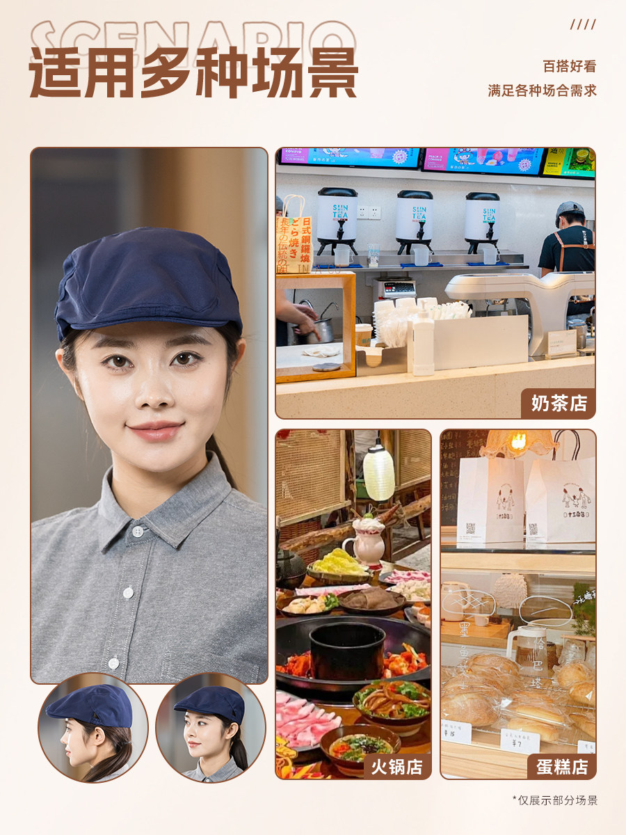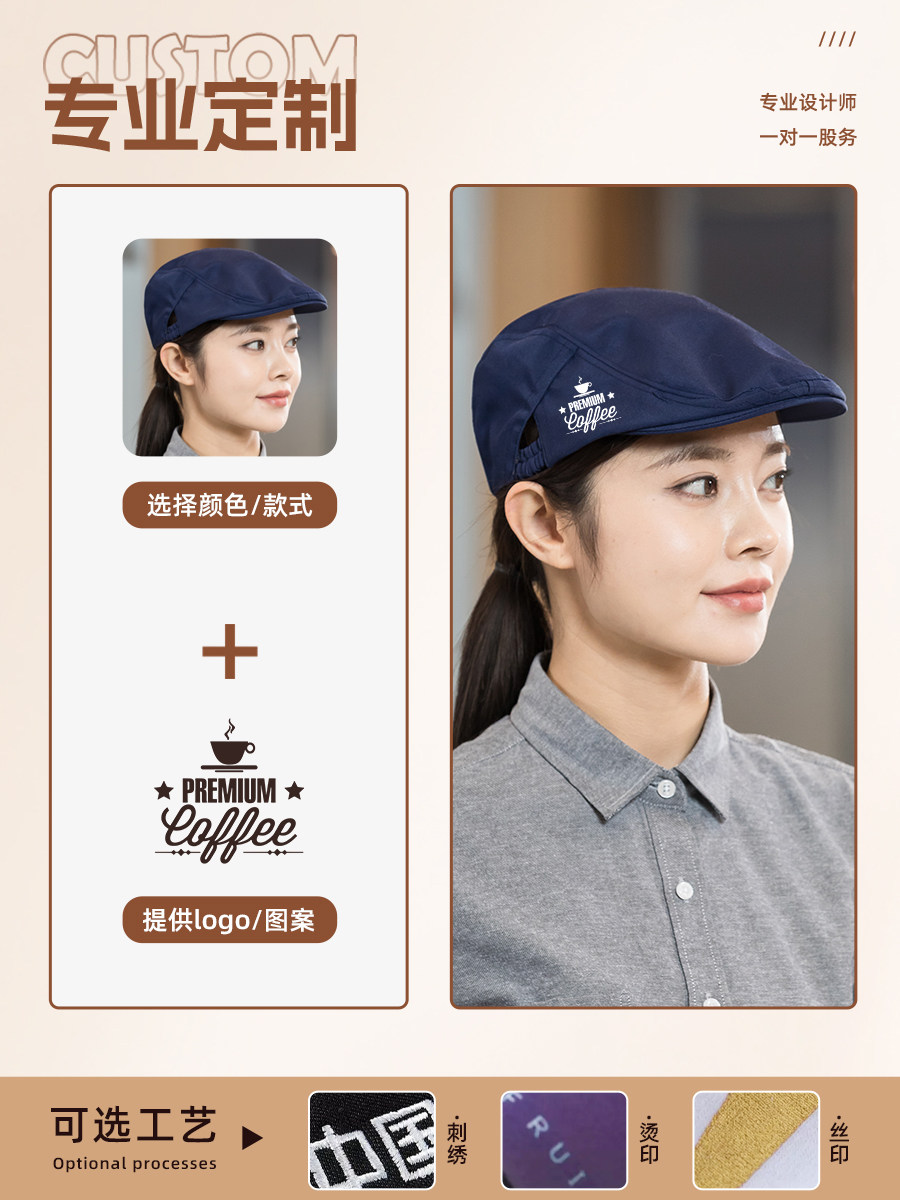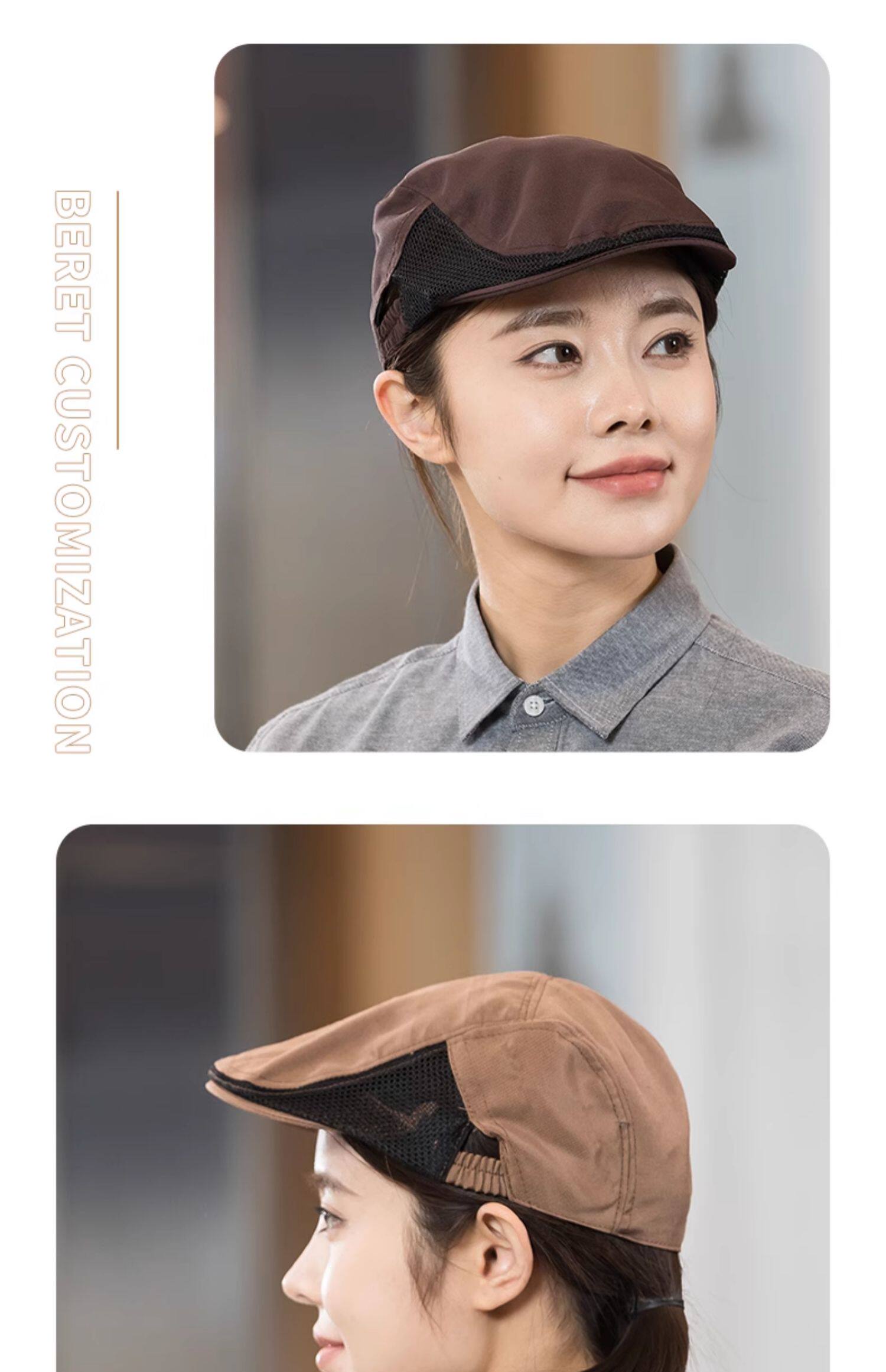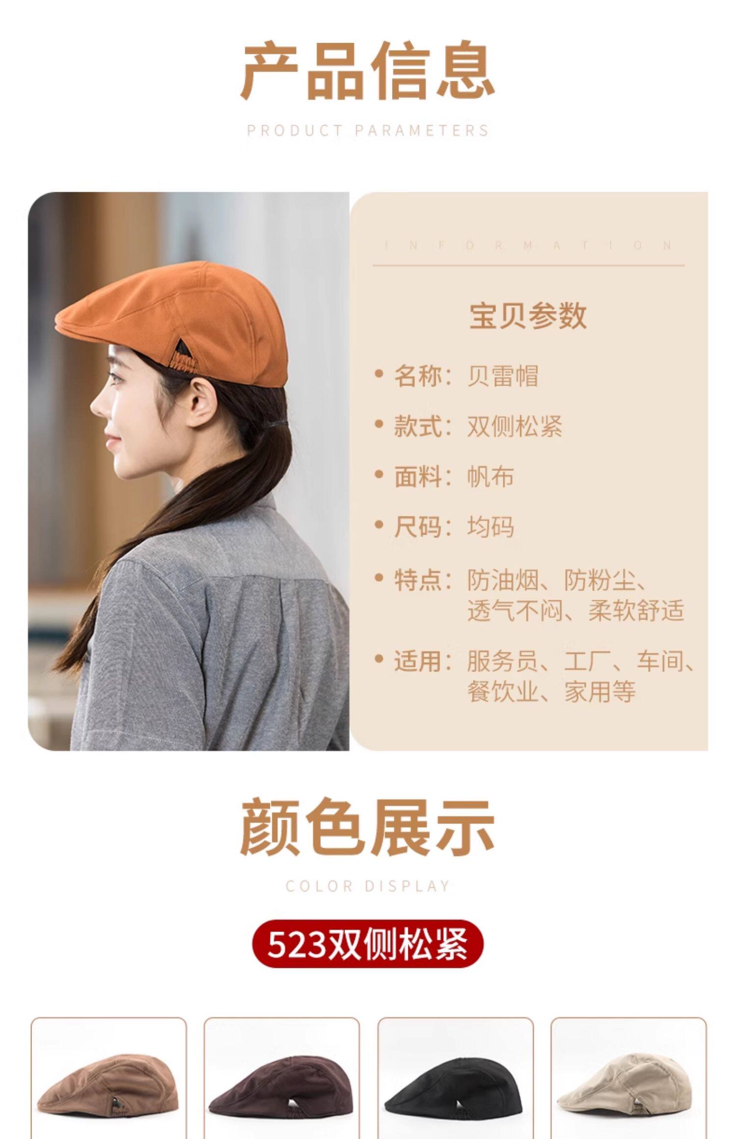 餐饮专用工作帽子蛋糕咖啡奶茶店服务员贝雷帽厨房防掉发厨师帽女