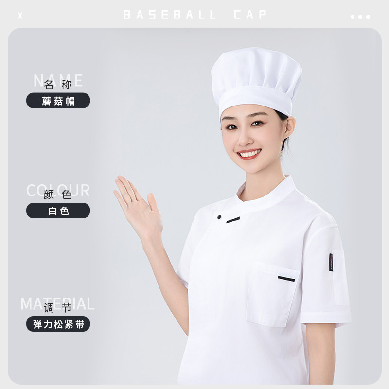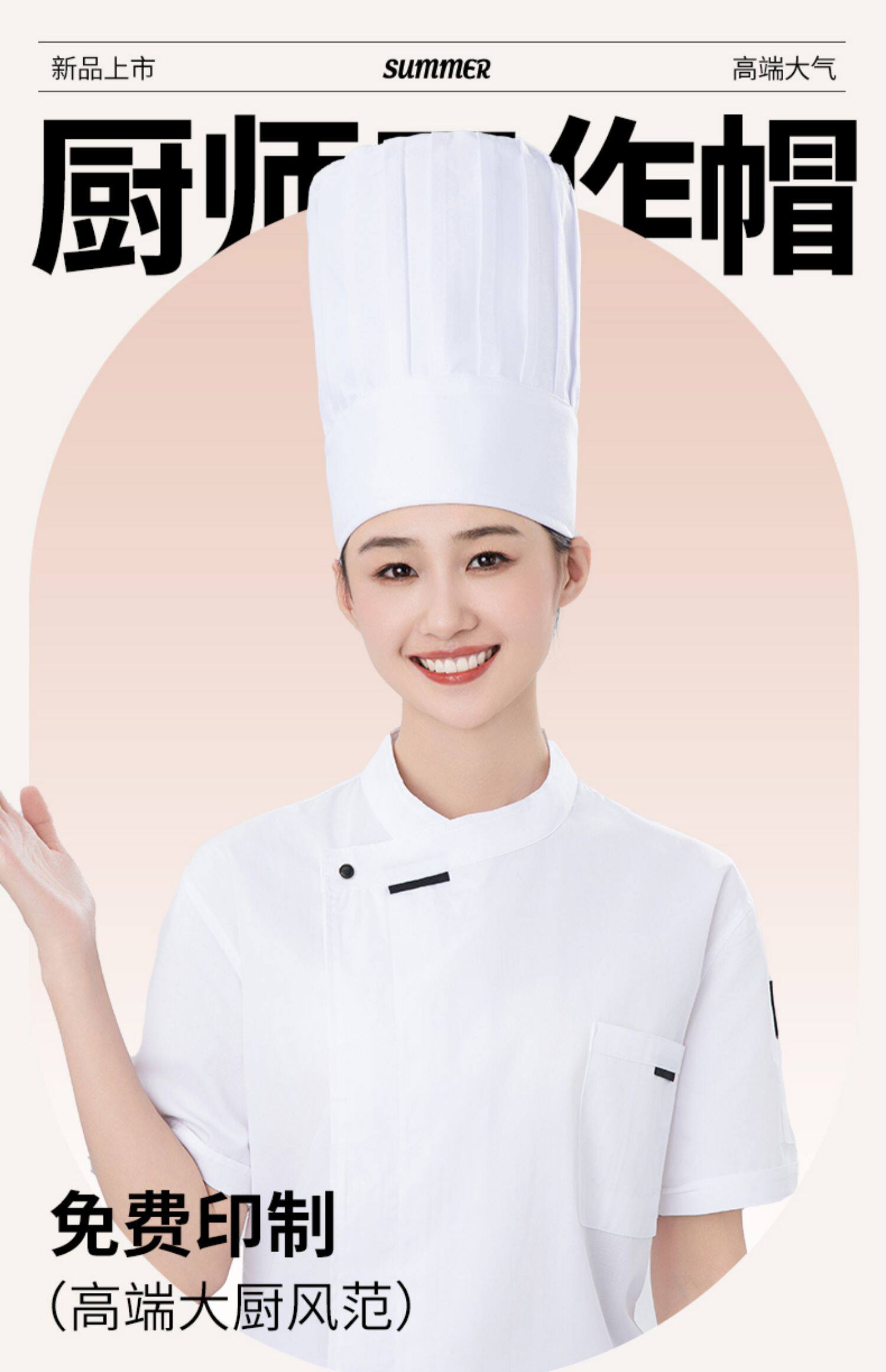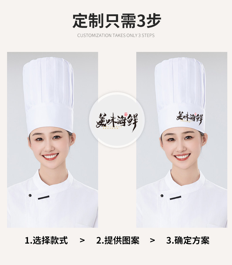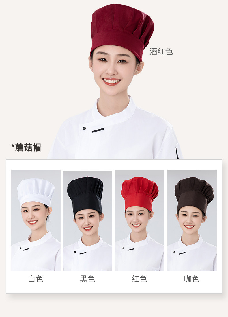 白色厨师帽定制logo印字工作帽酒店后厨厨房防油烟防掉发蘑菇帽子