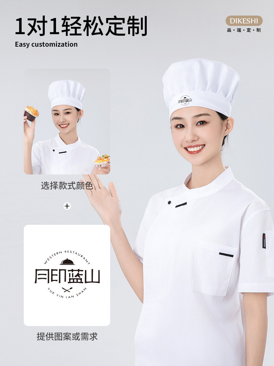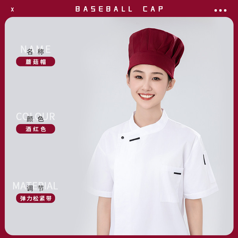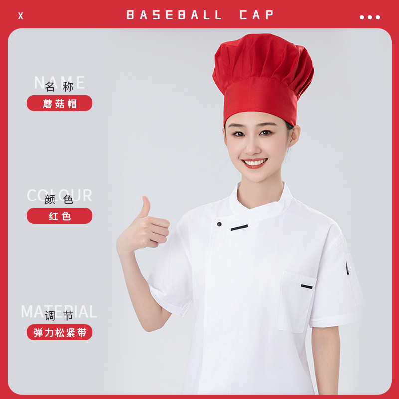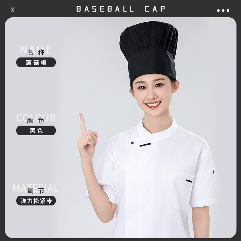 白色厨师帽定制logo印字工作帽酒店后厨厨房防油烟防掉发蘑菇帽子