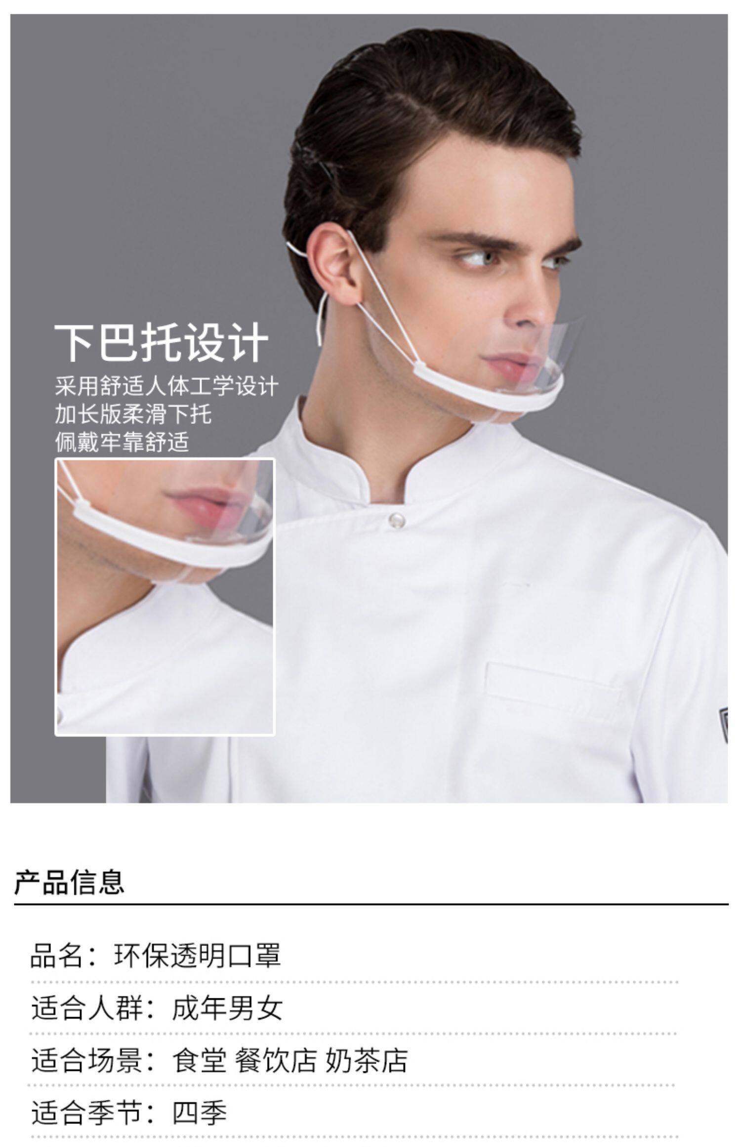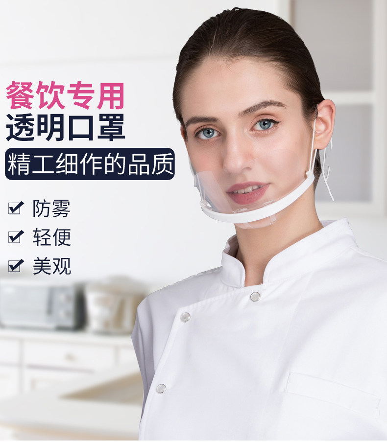 10只装透明防雾防唾沫口罩塑料食品酒店厨房餐厅餐饮饭店食堂面罩