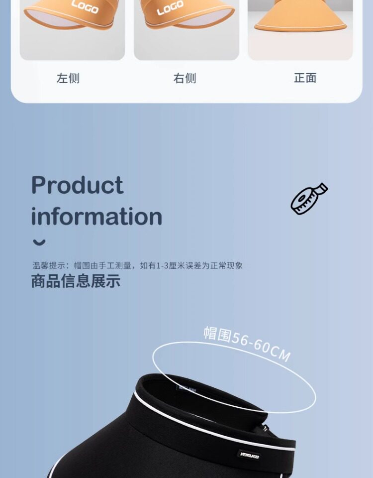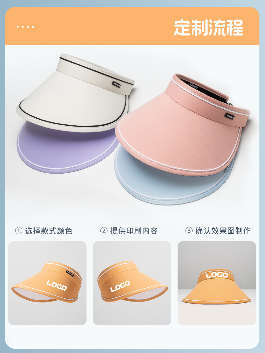 防晒空顶遮阳帽子女定制LOGO印字户外运动骑车防紫外线大檐帽男式