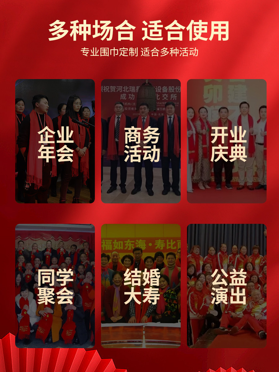 祝寿红围巾刺绣定制印logo老人生日寿宴公司年会活动红色披肩围脖