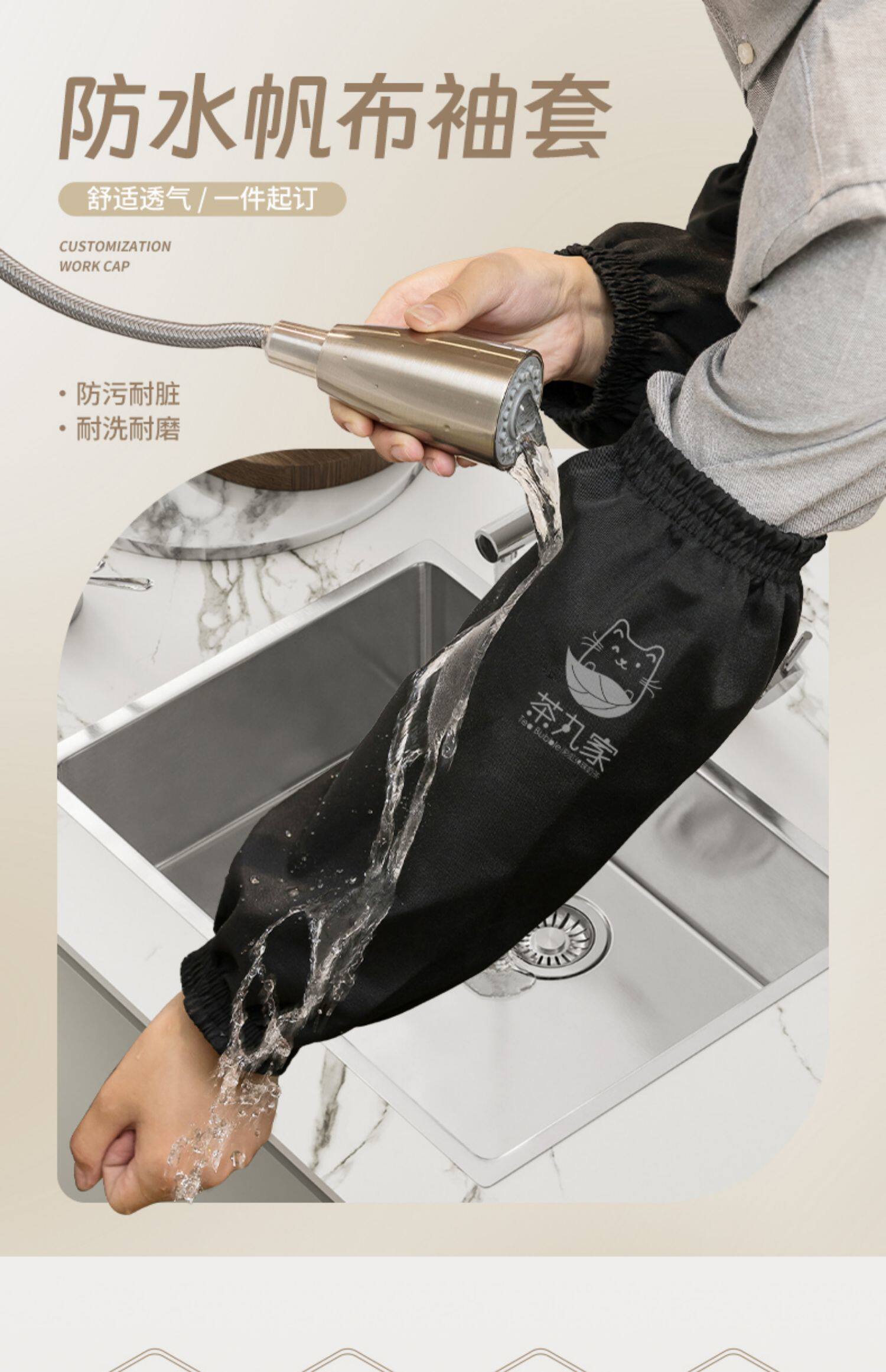 帆布防水袖套定制logo印字餐饮烧烤饭店厨房后厨防油工作护袖新款