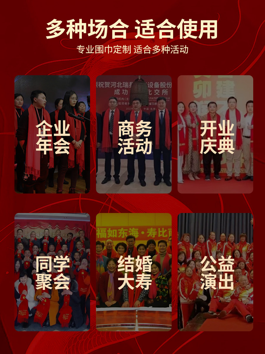 红围巾定制logo印字刺绣结婚祝寿同学聚会开业典礼年会大红色围脖
