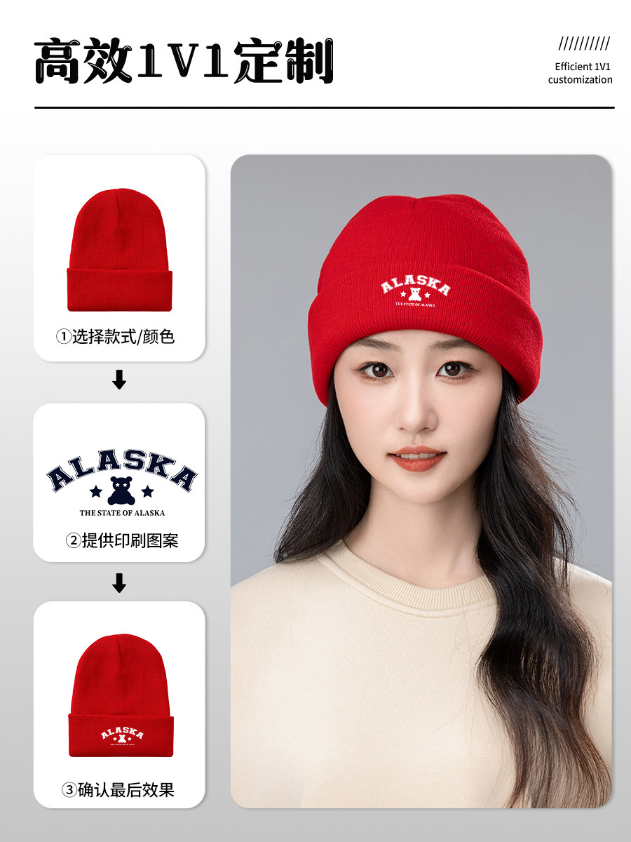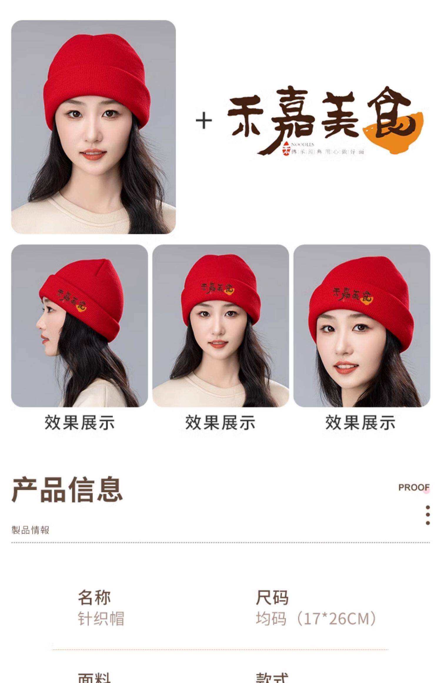 红色针织帽定制印字logo秋冬季防寒保暖户外团体工作帽刺绣毛线帽