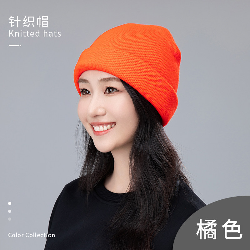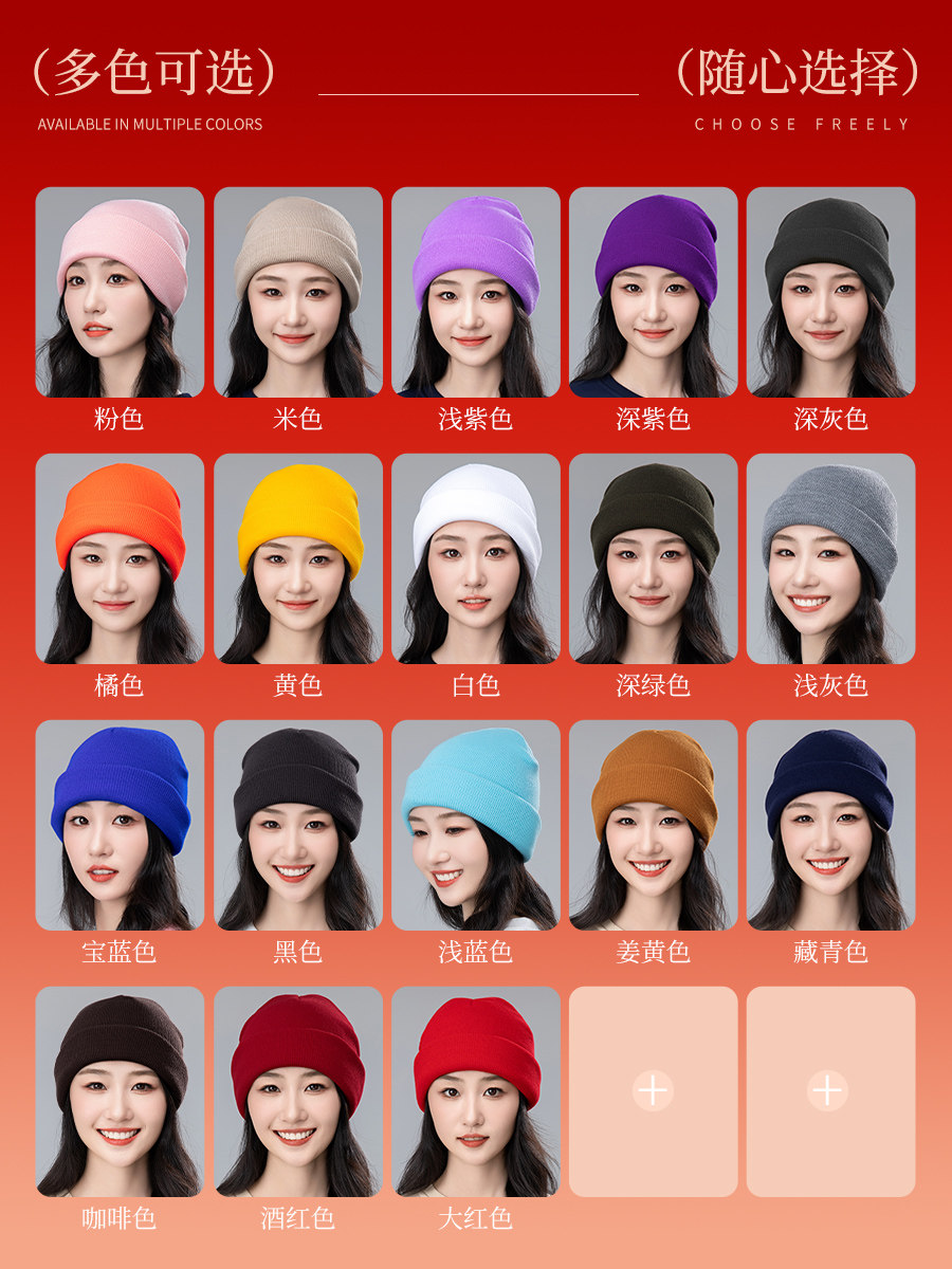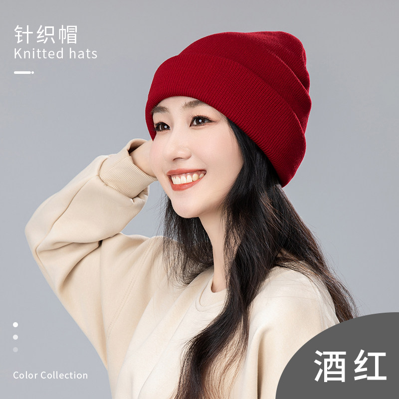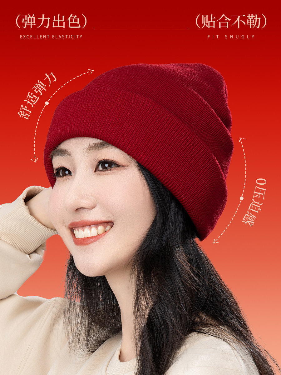 红色针织毛线帽定制logo刺绣冬季护耳保暖帽子新年聚会团队工作帽