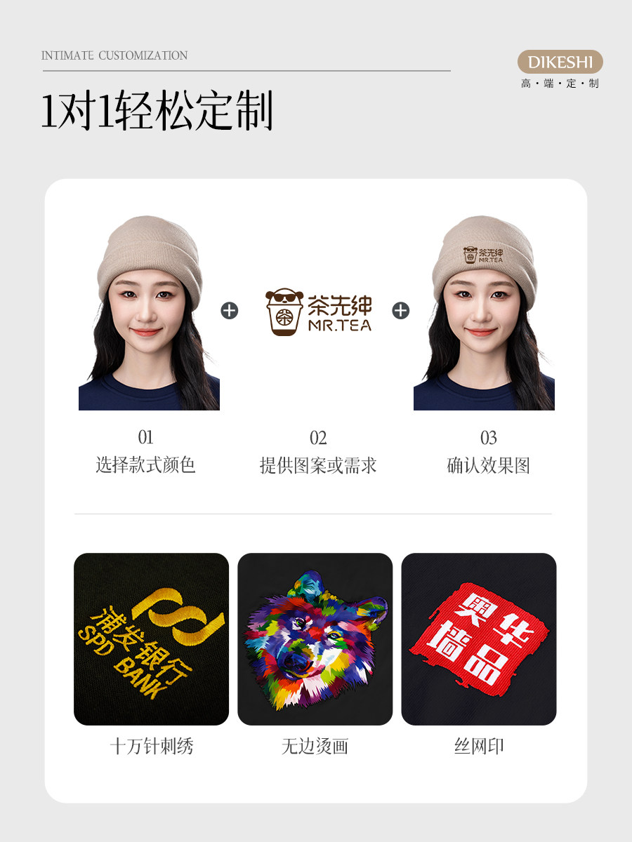 白色新款毛线帽子定制印logo刺绣时尚户外大头围护耳针织冷帽冬季