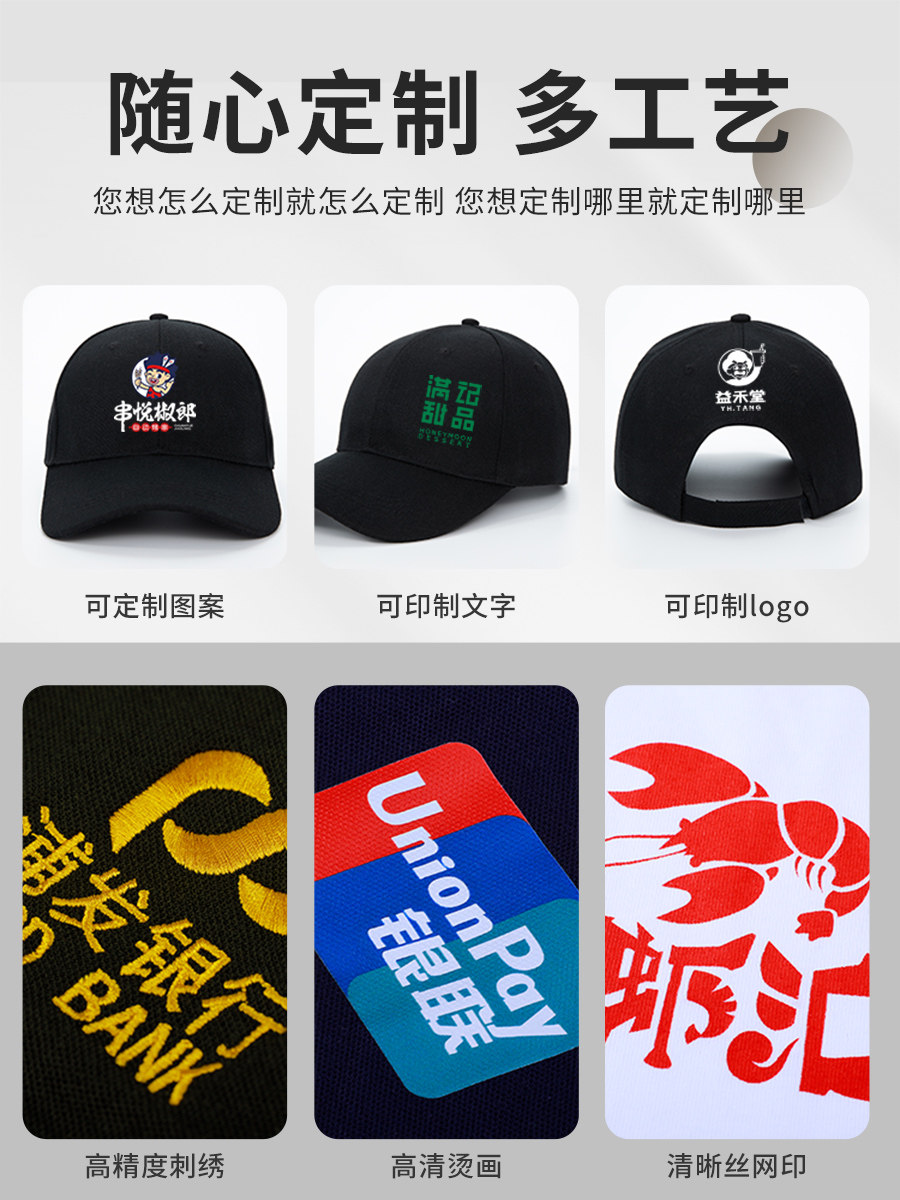 帽子定制logo印字刺绣团建活动奶茶店厨师餐饮专用广告鸭舌工作帽