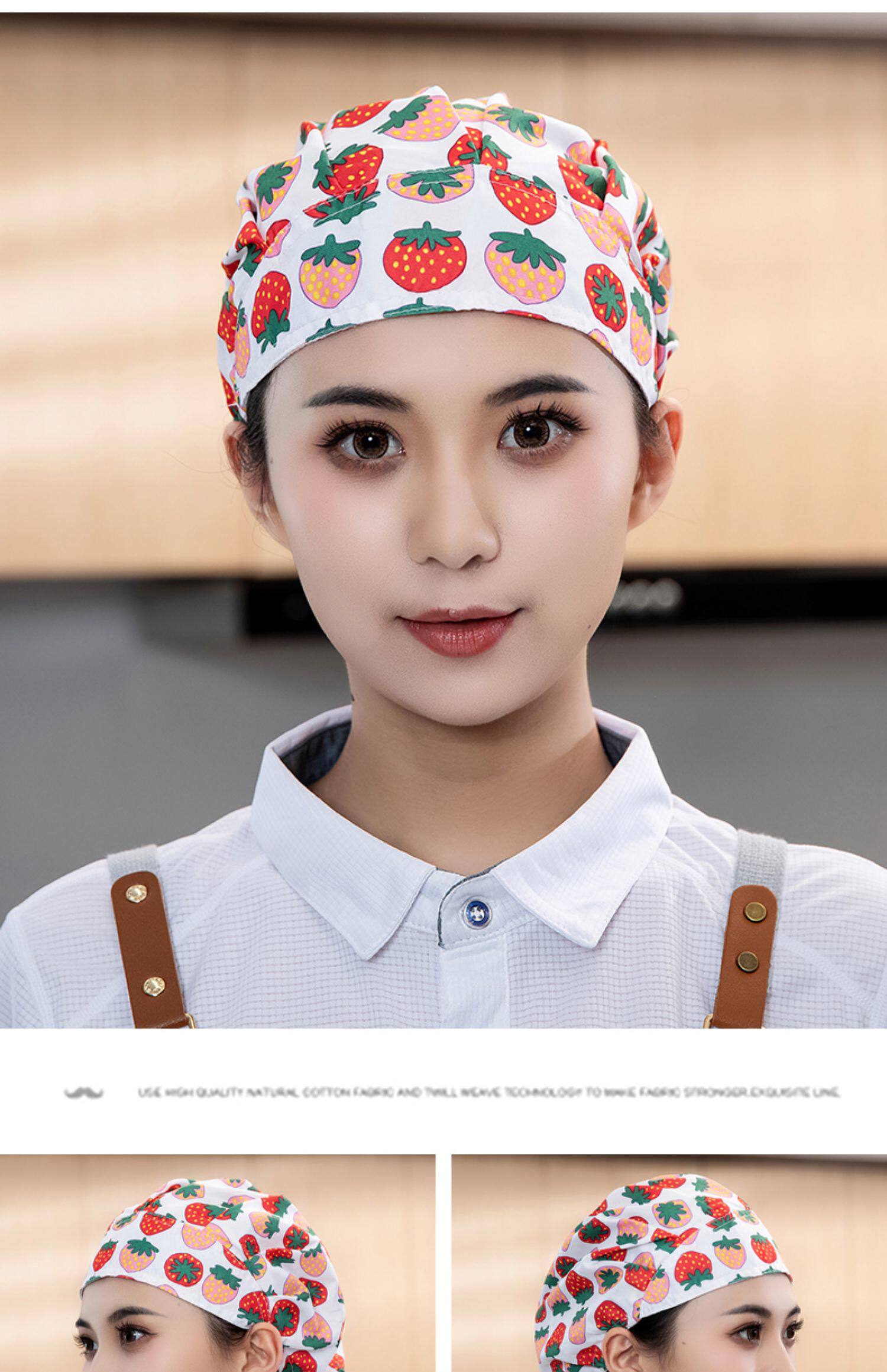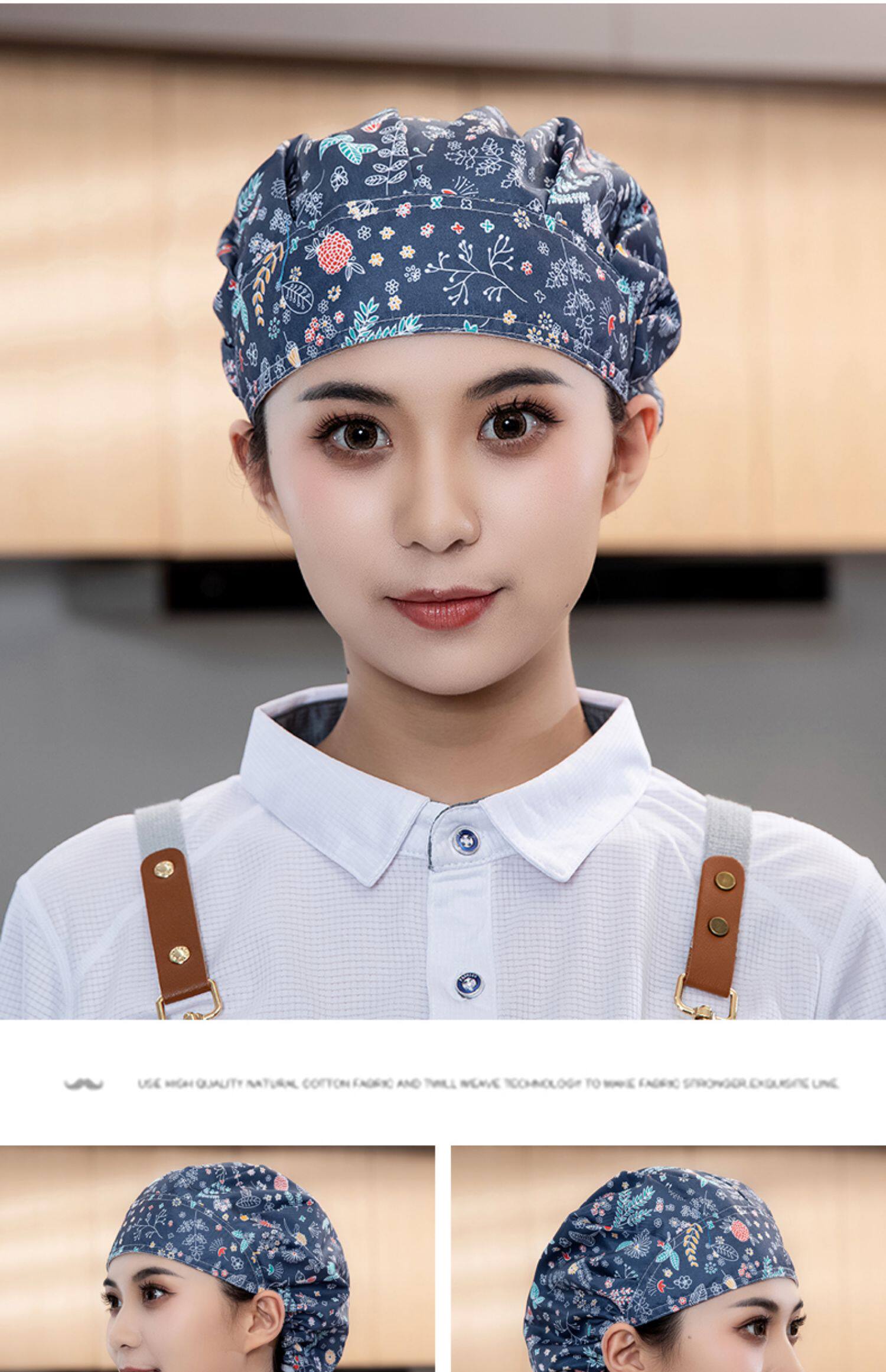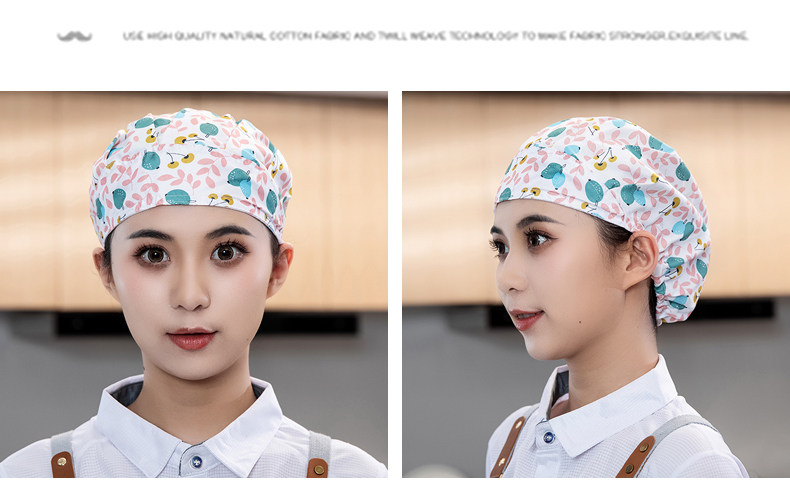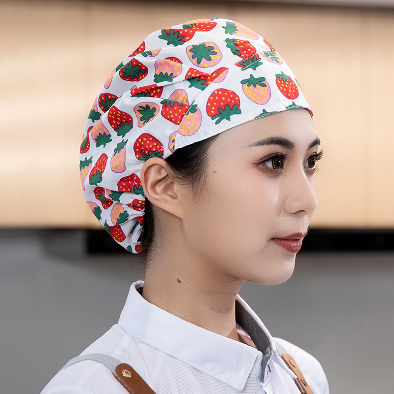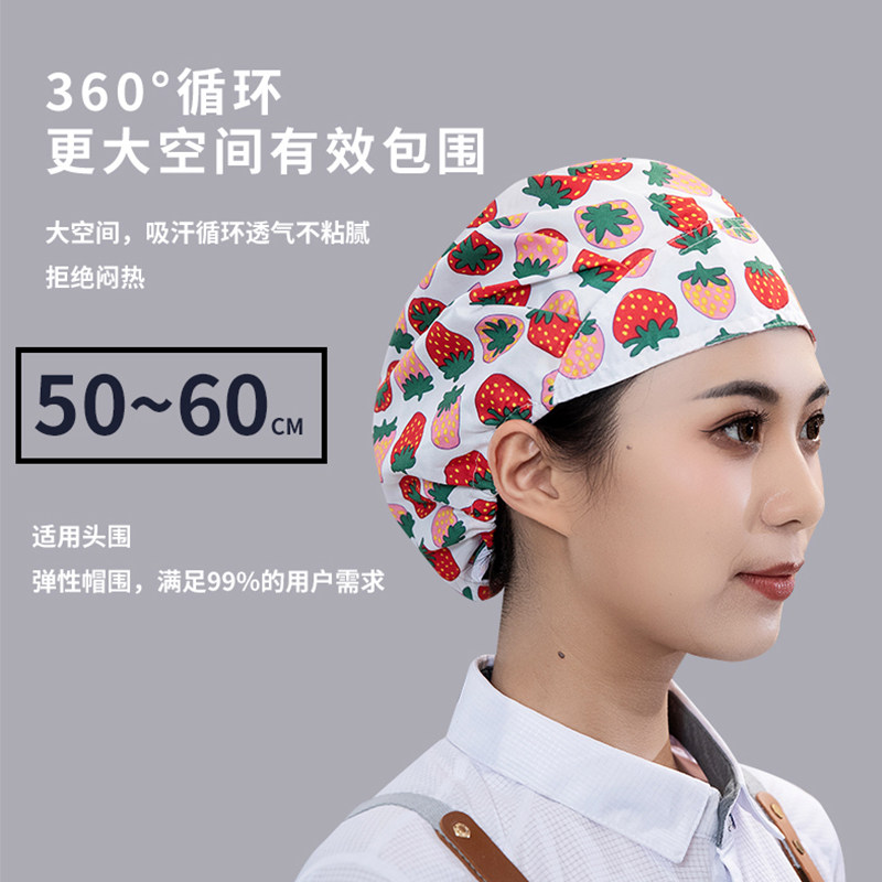 酒店厨师帽女厨房防油烟可调节松紧家用餐饮白色工作帽子高布帽男