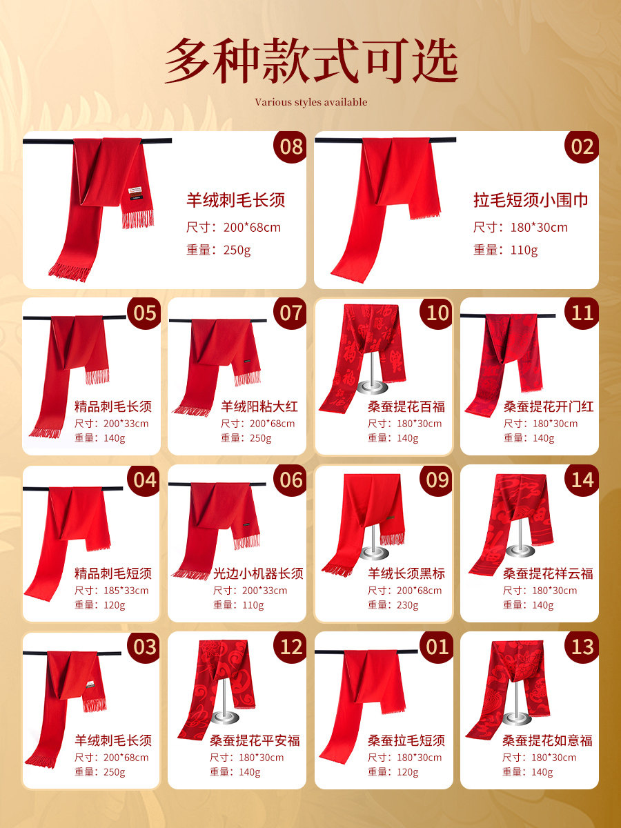 年会红围巾定制logo印字刺绣企业公司团建聚会活动中国红围脖披肩