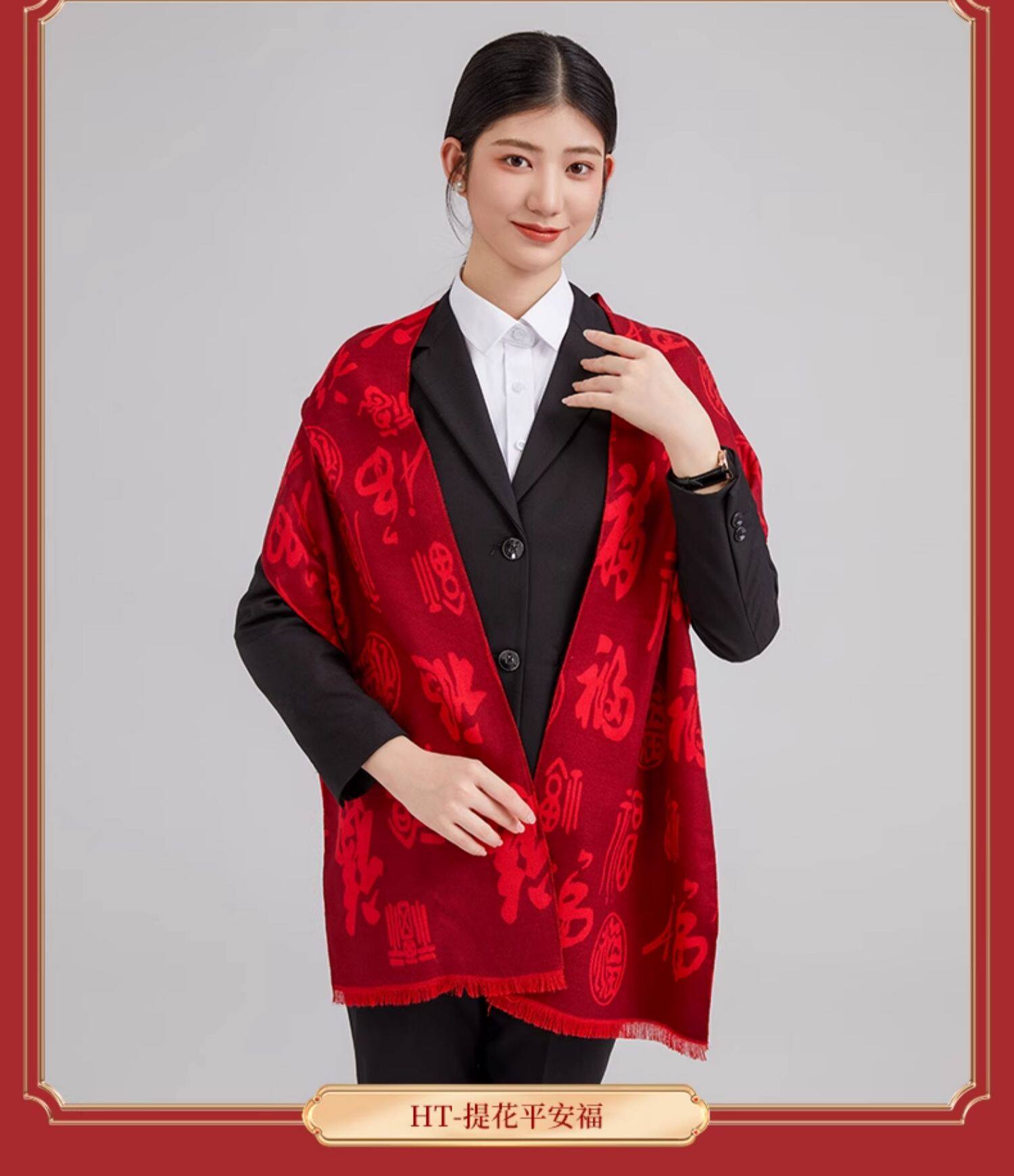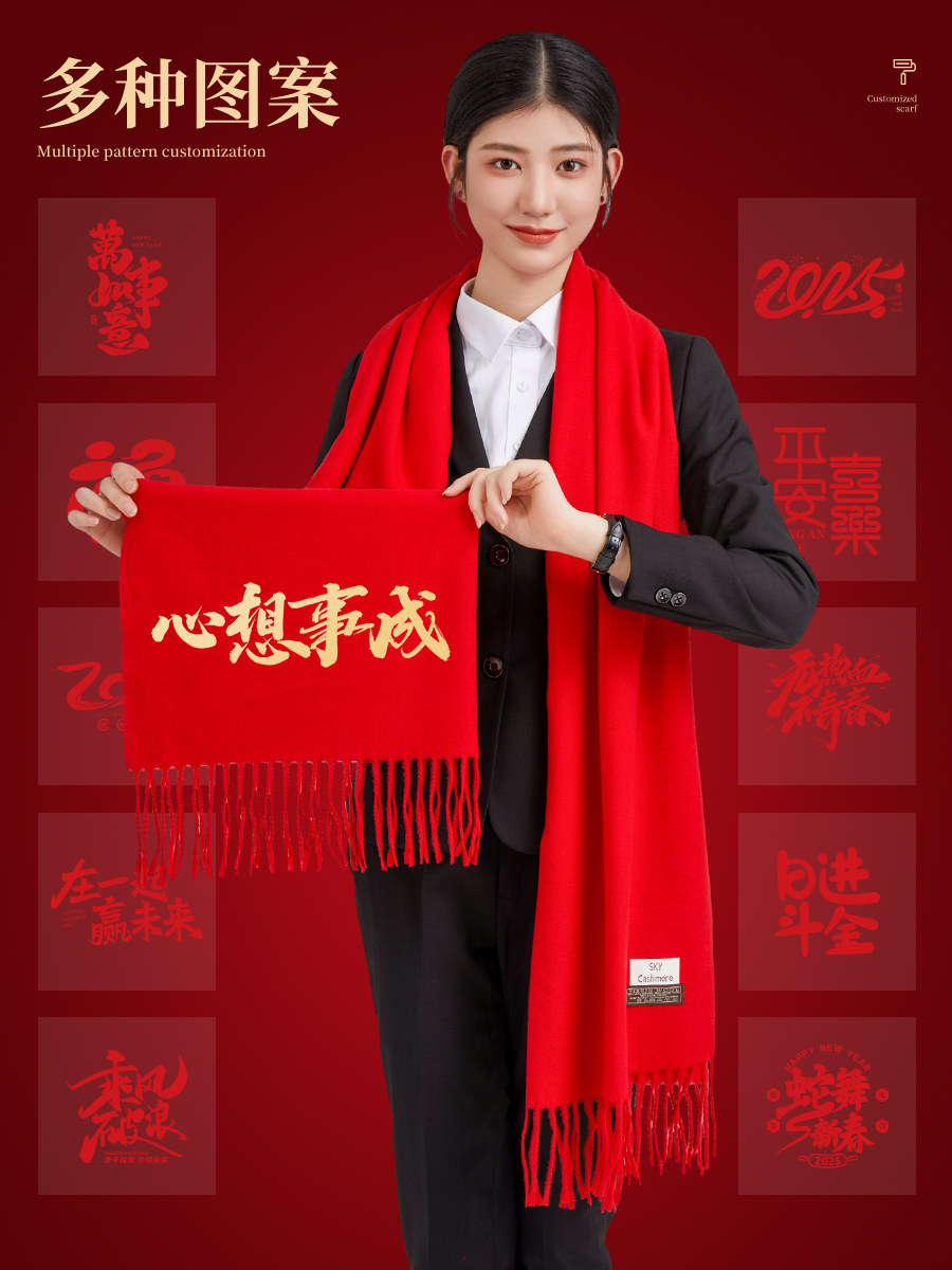 中国红色围巾定制logo绣字公司年会开业典礼同学聚会披肩羊绒围脖