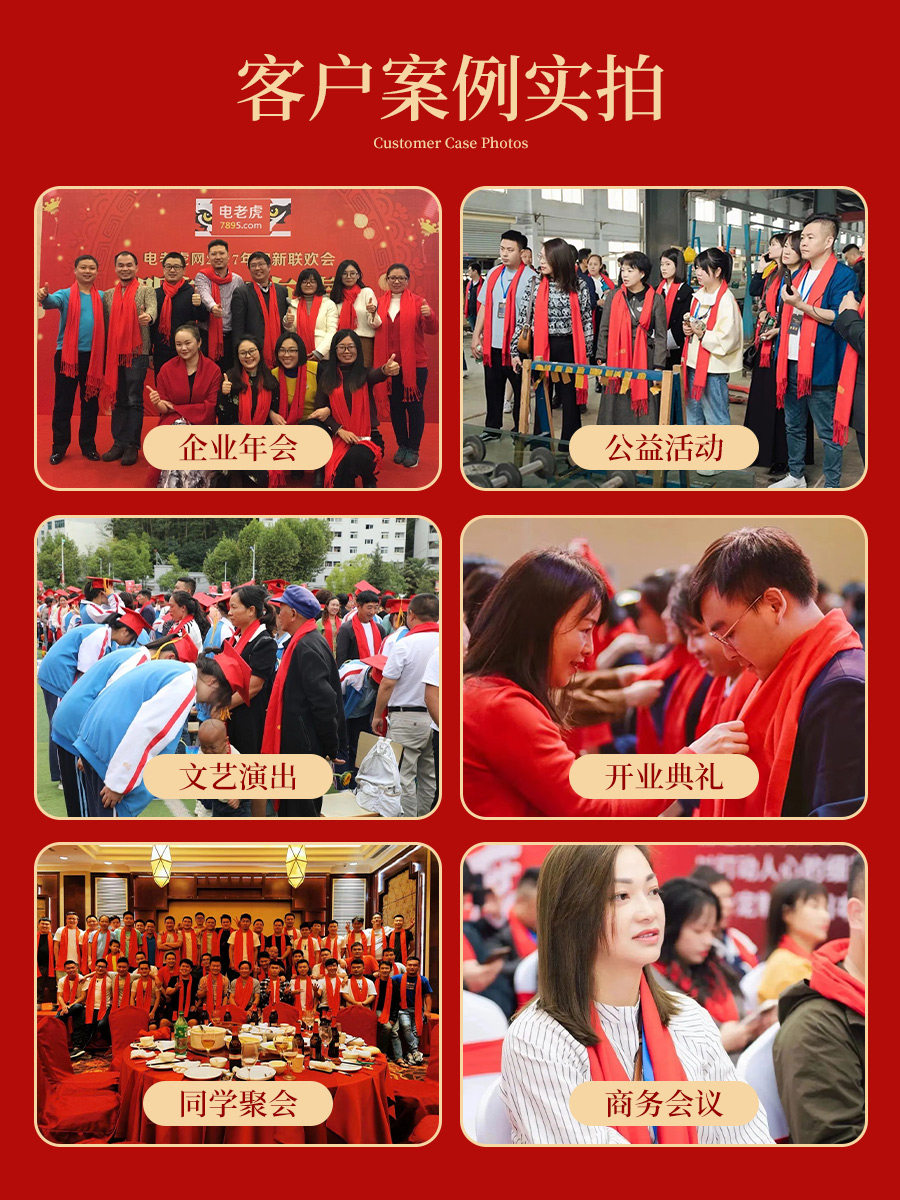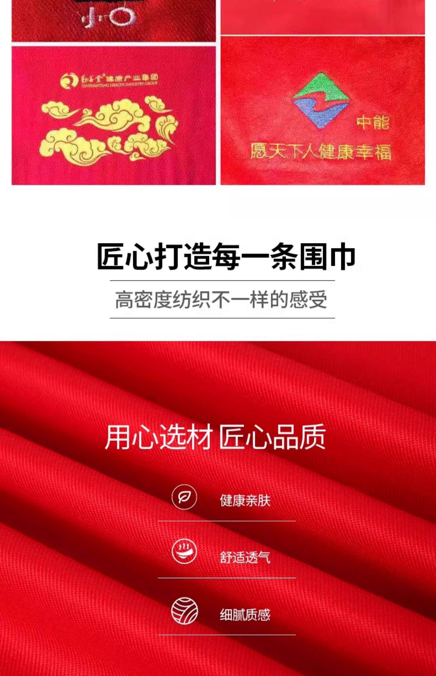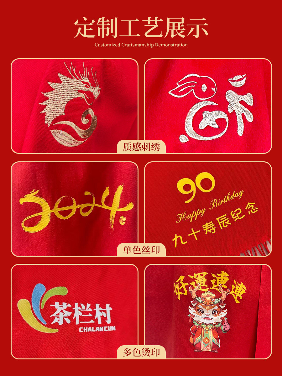 中国红围巾定制印logo公司开业周年庆典围脖年会聚会活动披肩刺绣