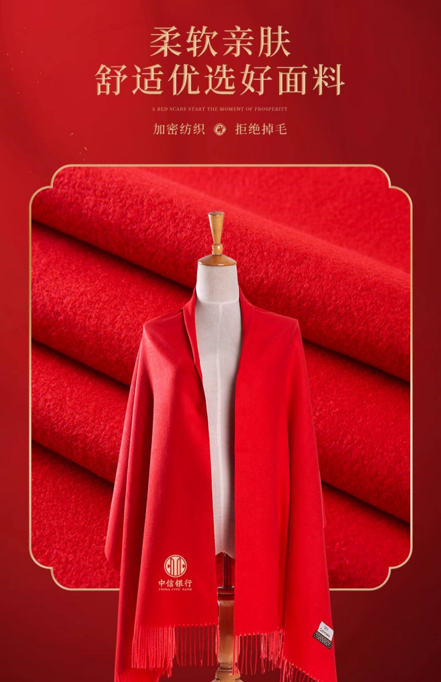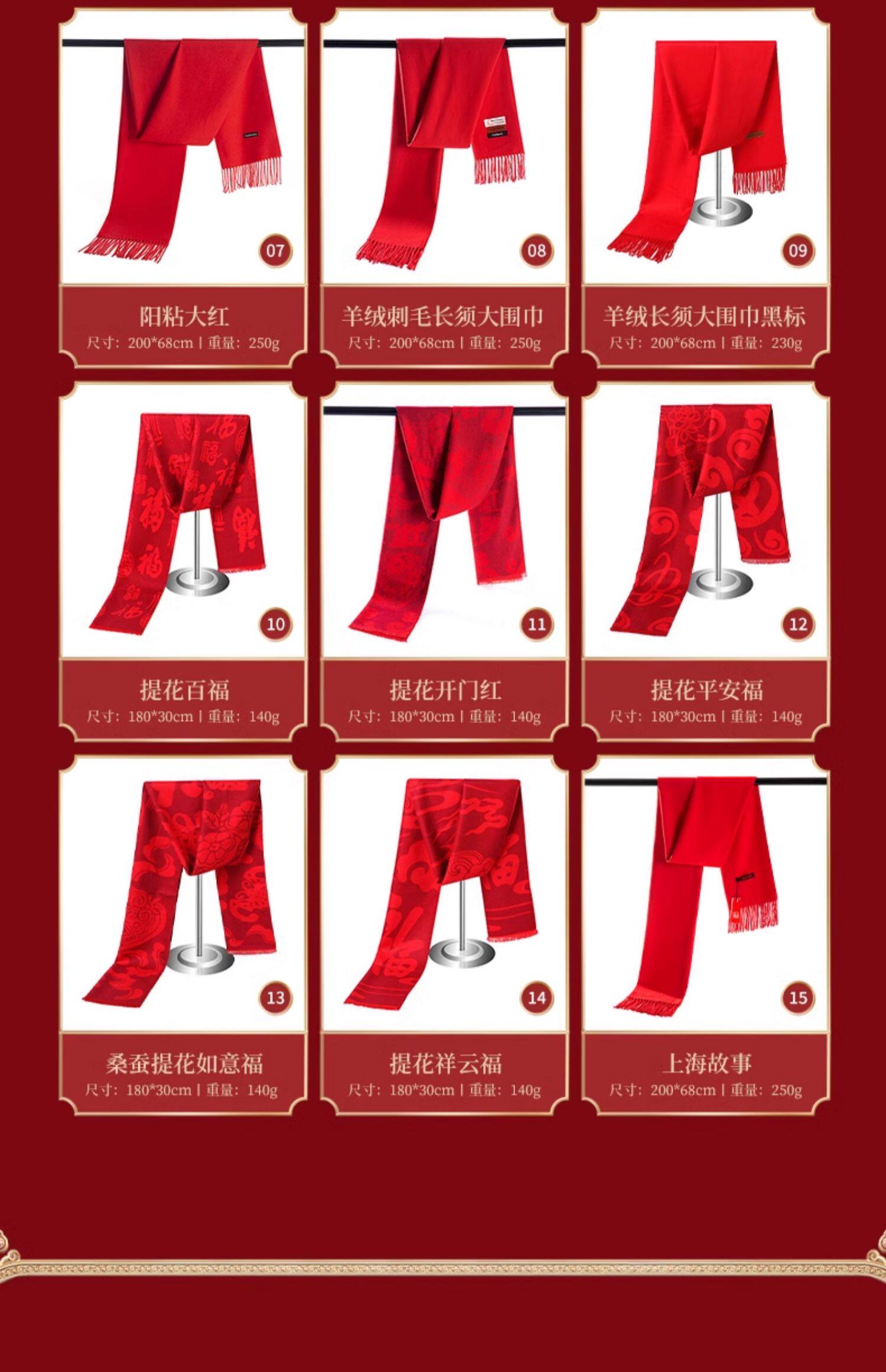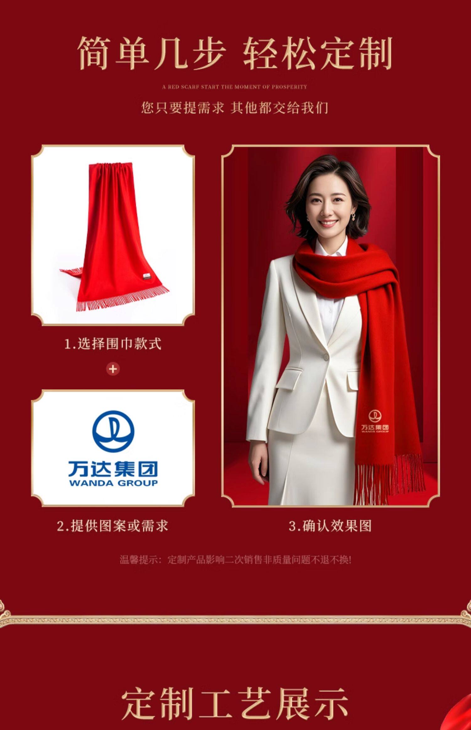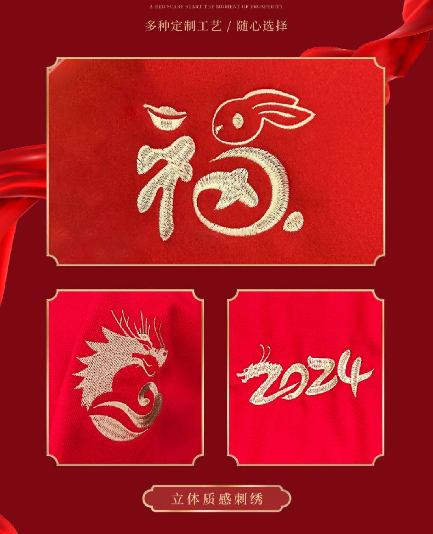 中国红围巾定制logo刺绣图案年会活动公司庆典开门红新年围脖披肩