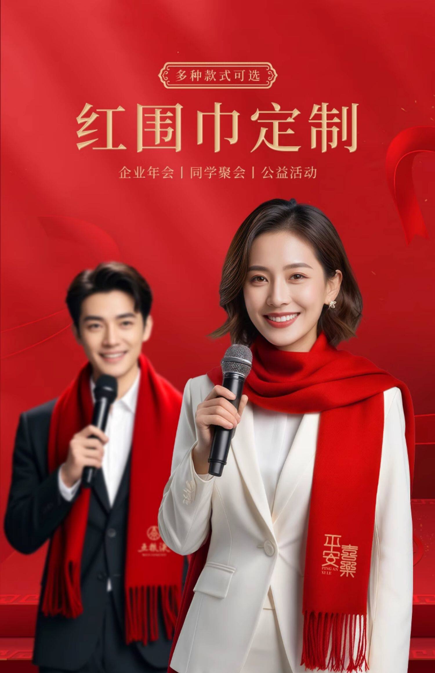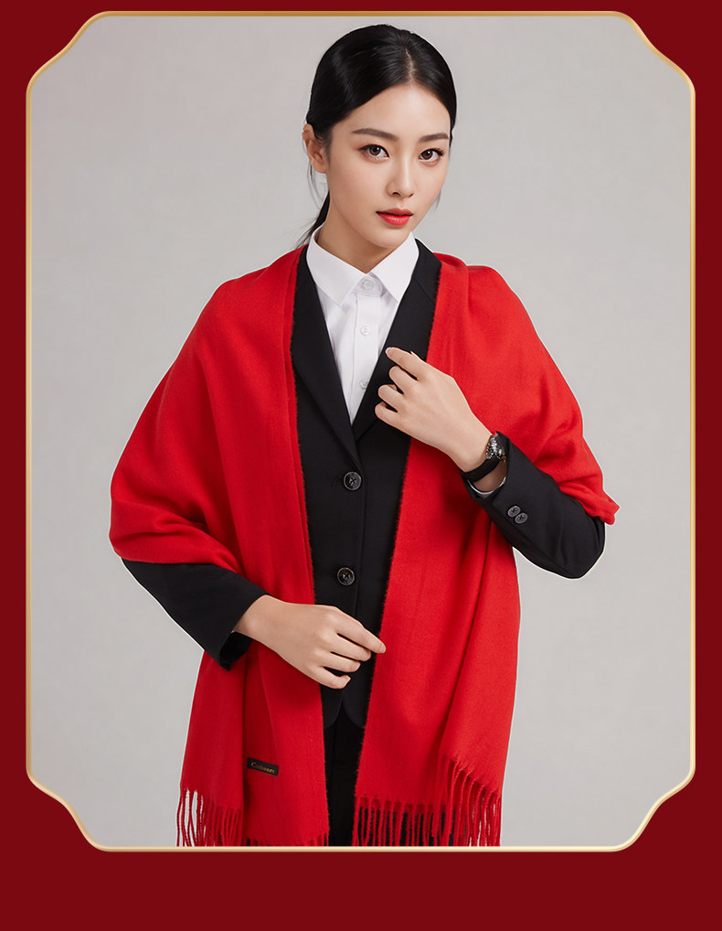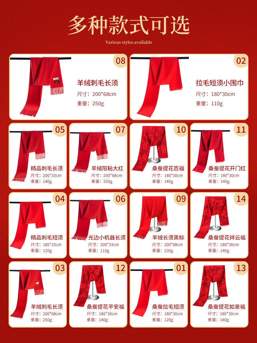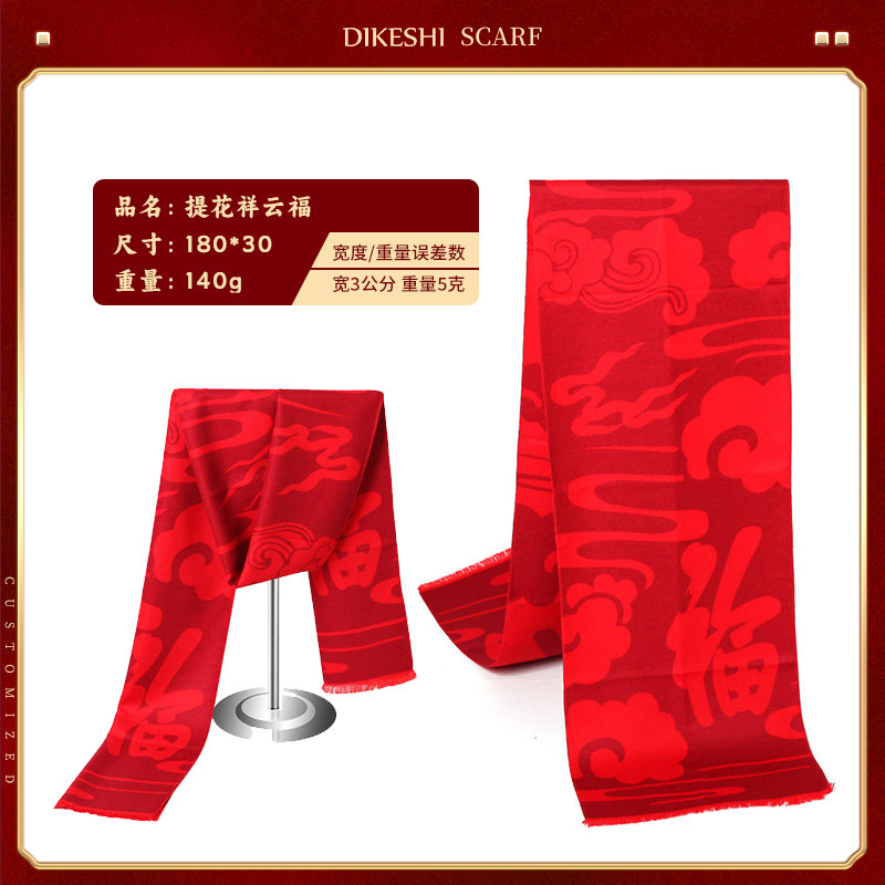 中国红围巾定制logo刺绣图案年会活动公司庆典开门红新年围脖披肩