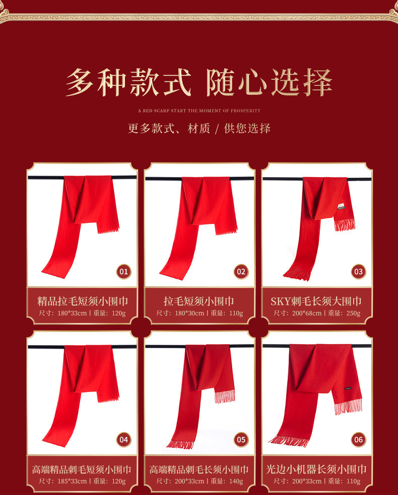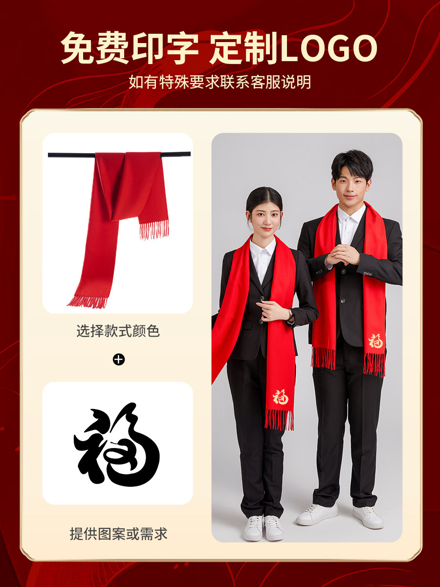 中国红围巾定制logo印字刺绣公司年会开业庆典大红色羊绒披肩围脖