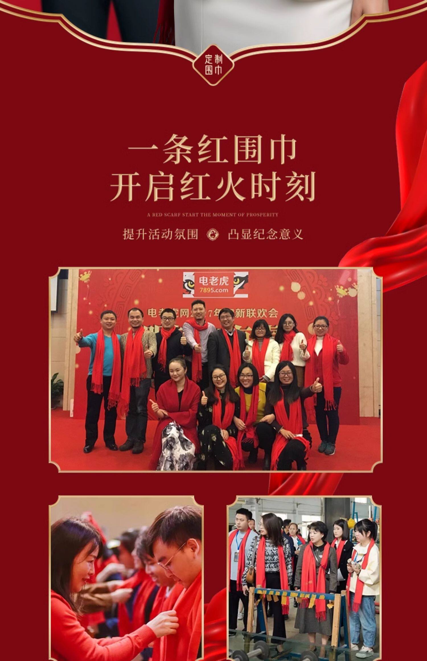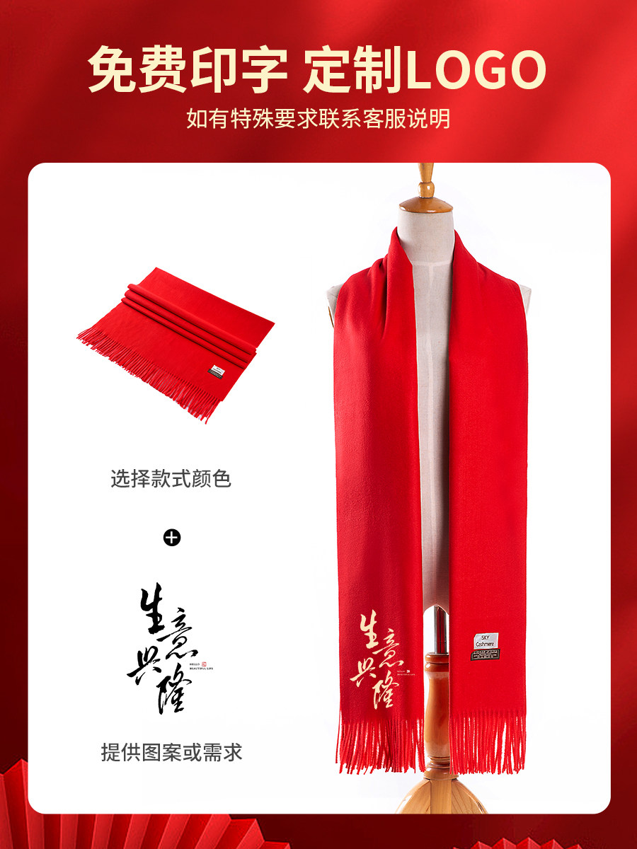 大红色围巾定制logo印字刺绣公司年会开业庆典中国红羊绒披肩围脖