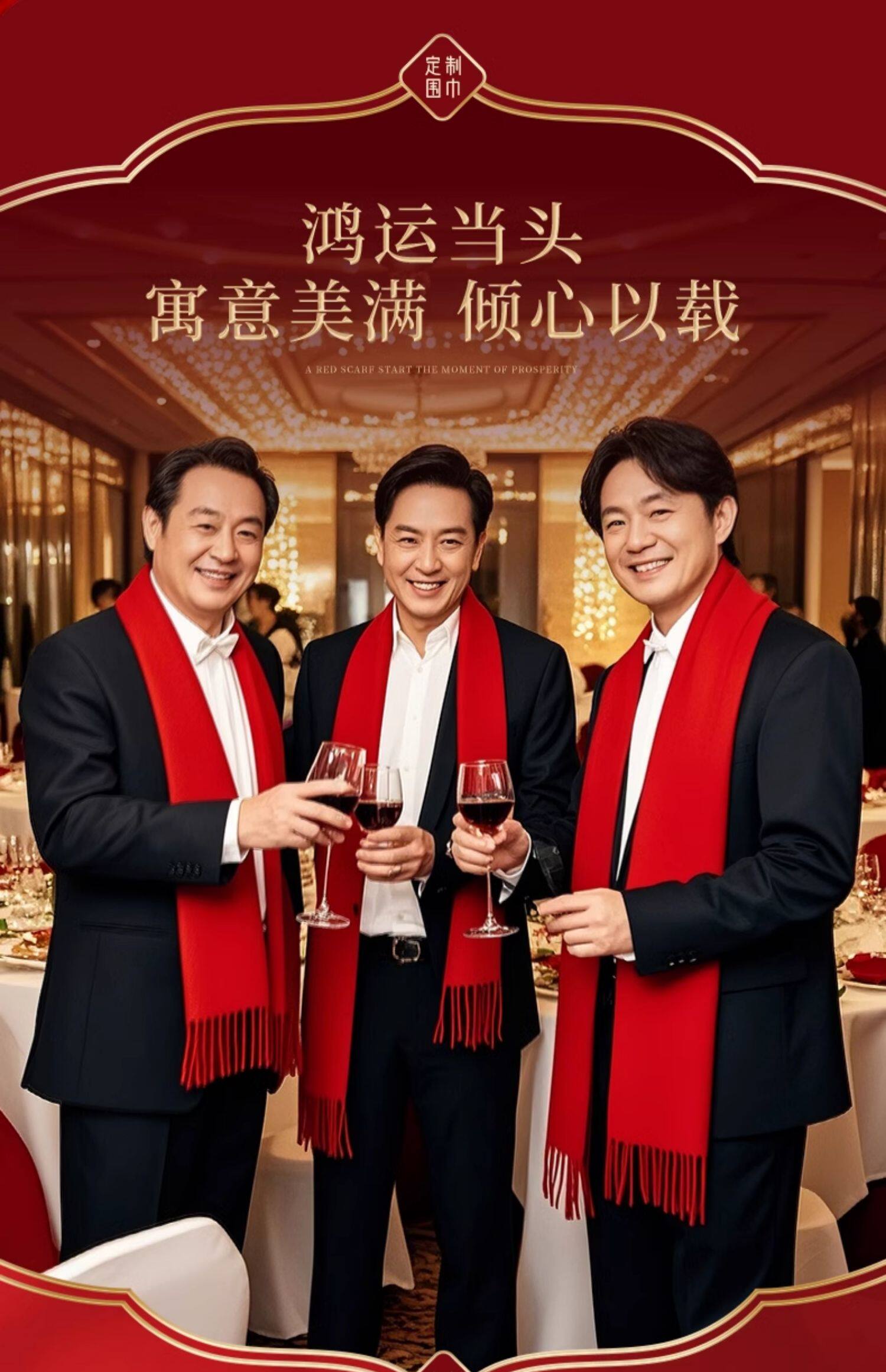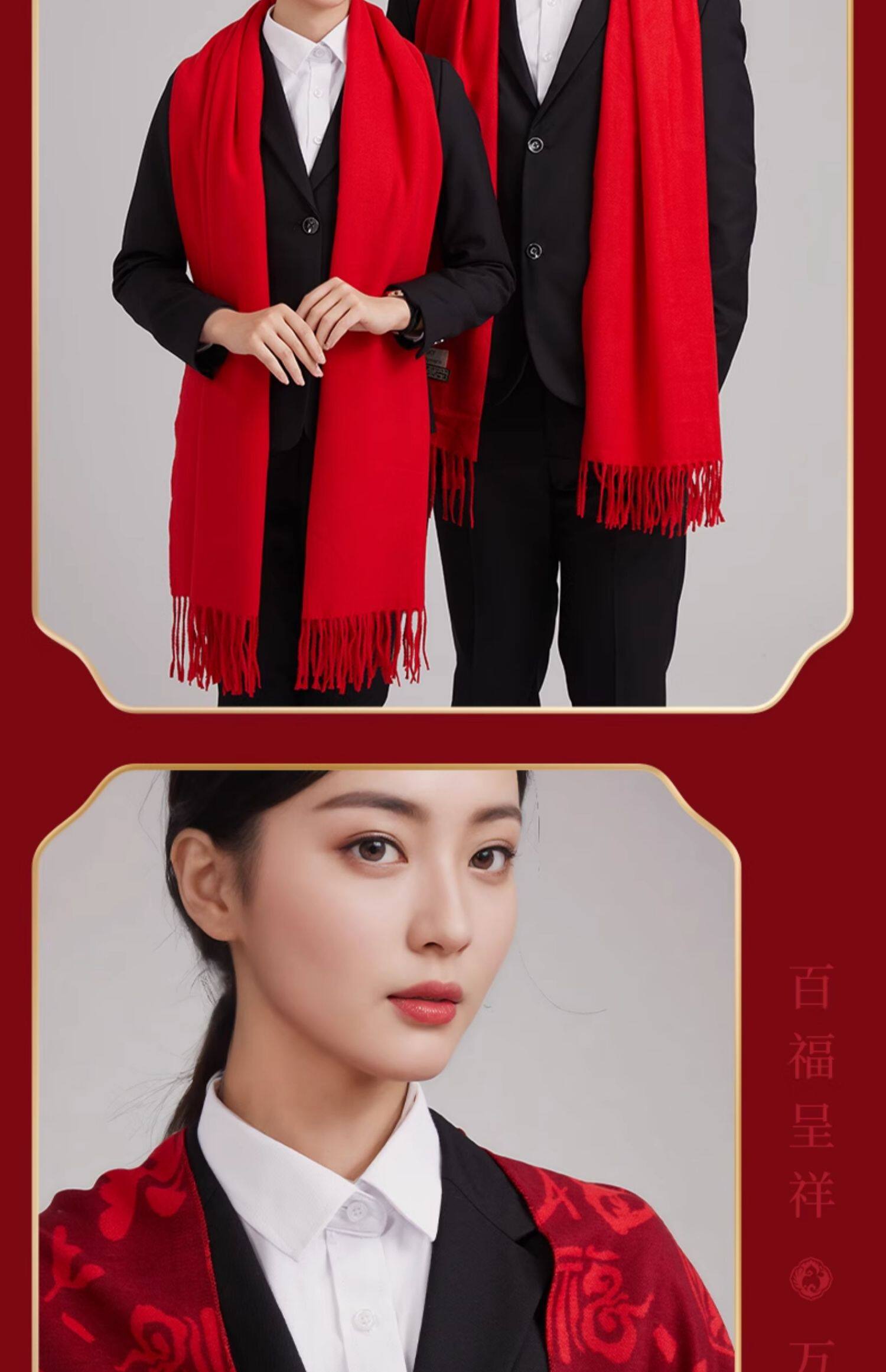 年会红色围巾定制印logo刺绣公司企业开业庆典聚会中国红羊绒围脖