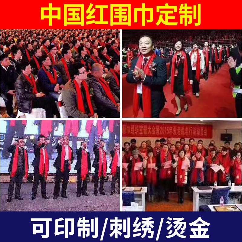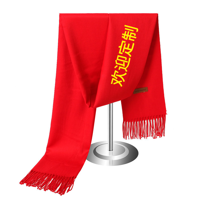 中国红围巾定制logo刺绣秋冬款公司年会活动庆典情侣围脖披肩男女