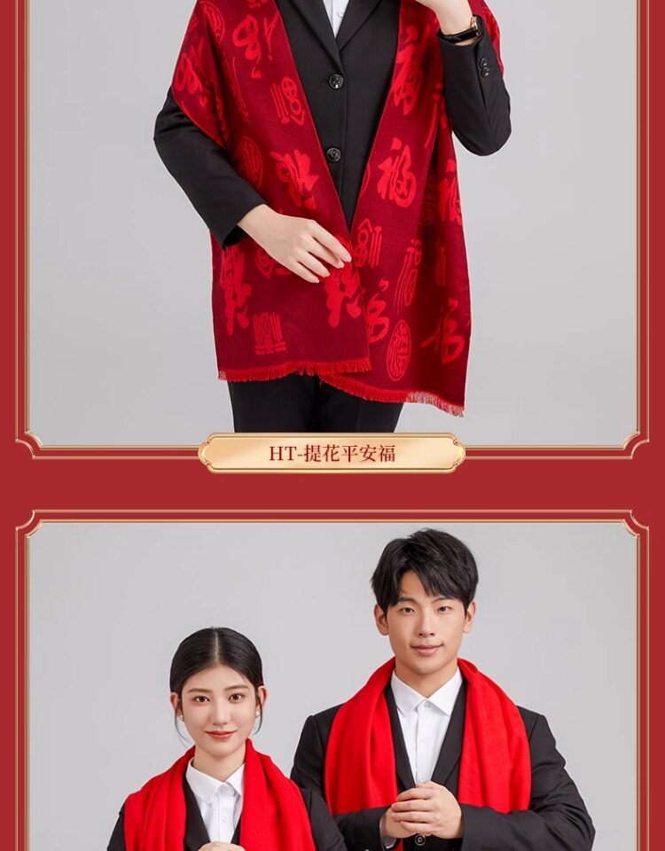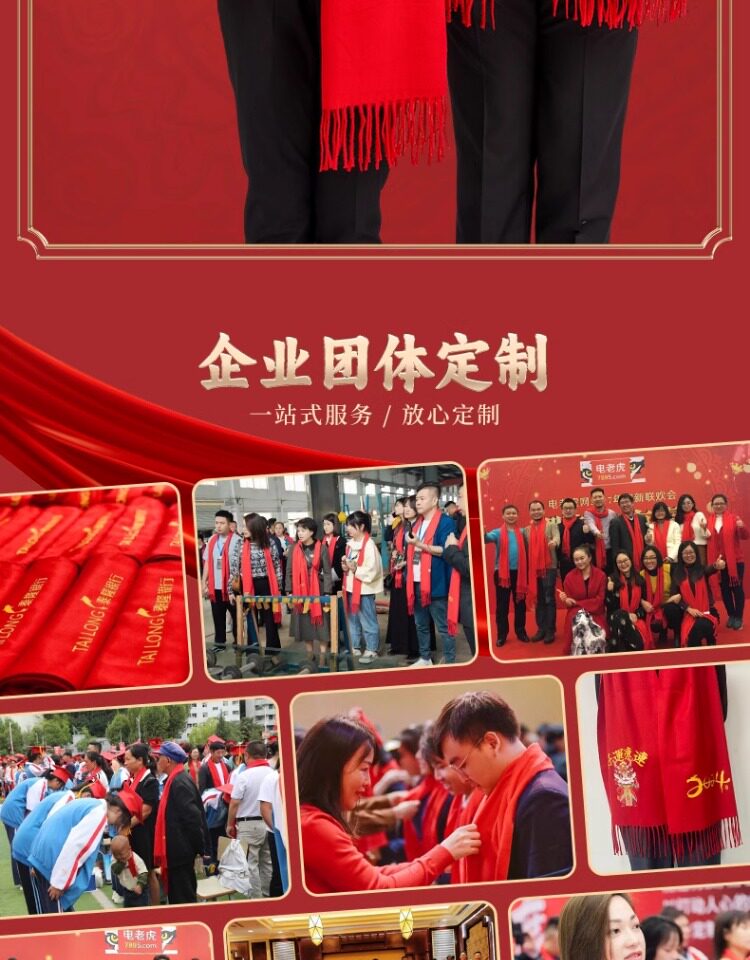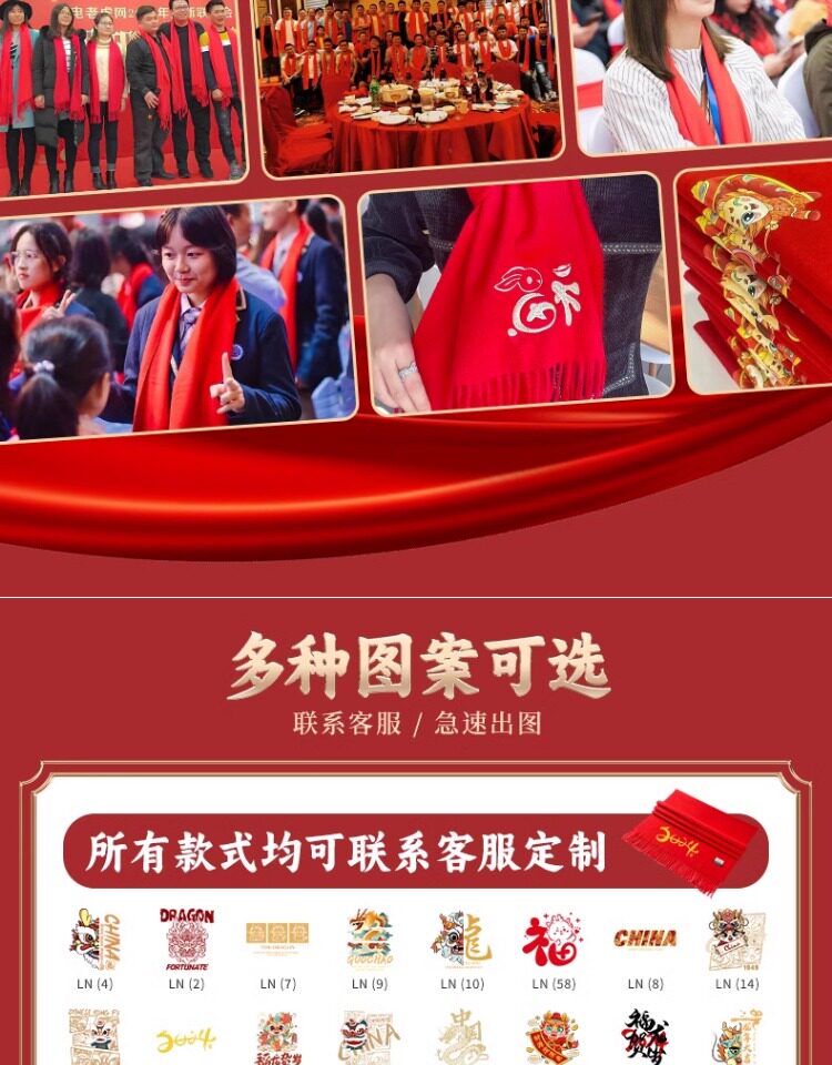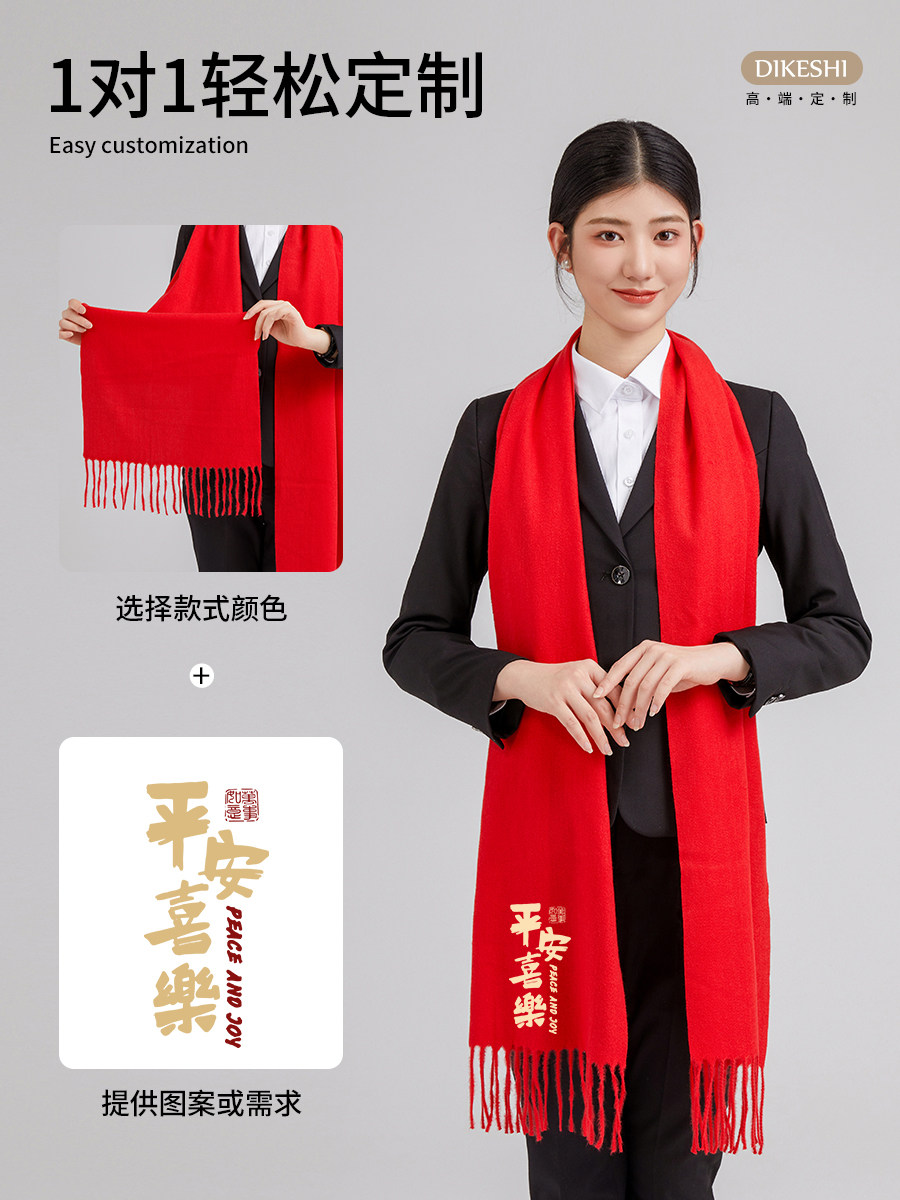 中国红围巾定制logo刺绣印名字公司企业典礼年会活动礼品披肩围脖
