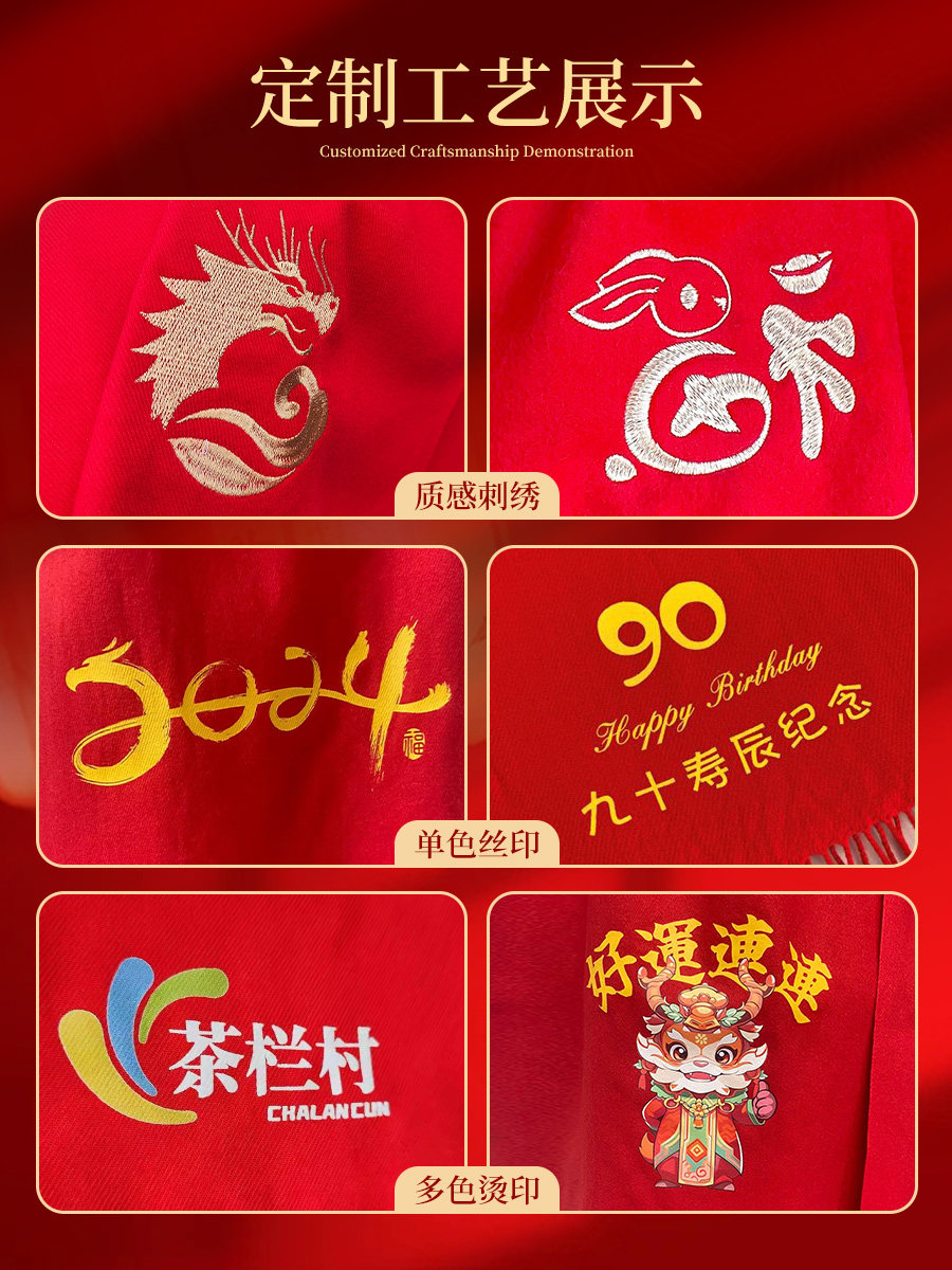 中国红围巾定制logo刺绣印名字公司企业典礼年会活动礼品披肩围脖