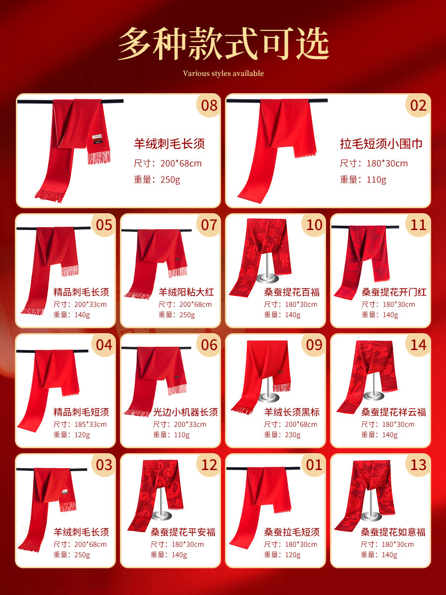 年会红色围巾定制印logo刺绣公司企业开业庆典聚会中国红羊绒围脖