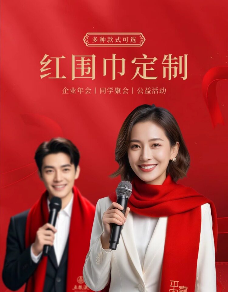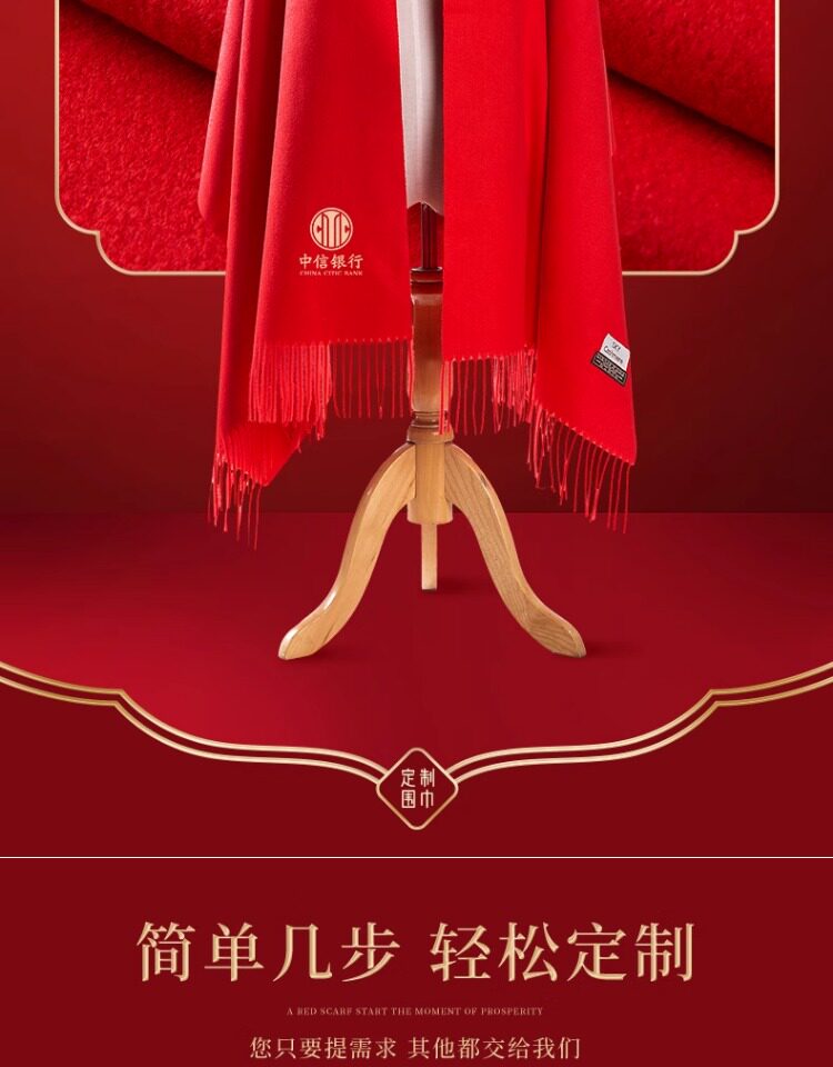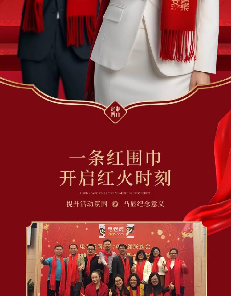 中国红围巾定制logo刺绣印名字公司企业典礼年会活动礼品披肩围脖
