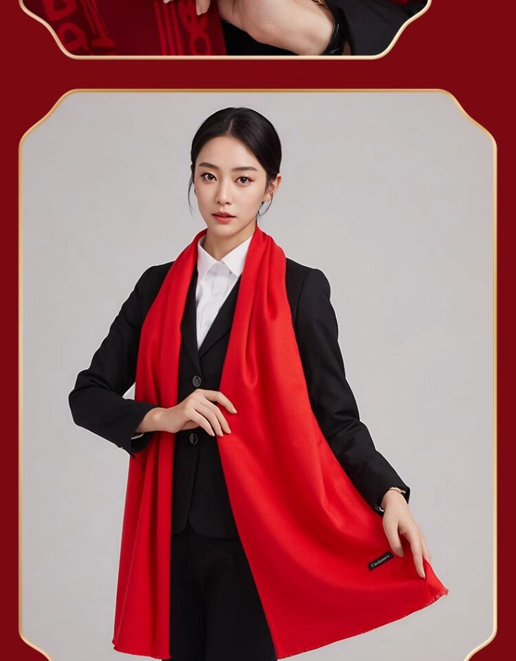 高级感红围巾定制logo印字冬季企业年会开业典礼同学聚会披肩围脖