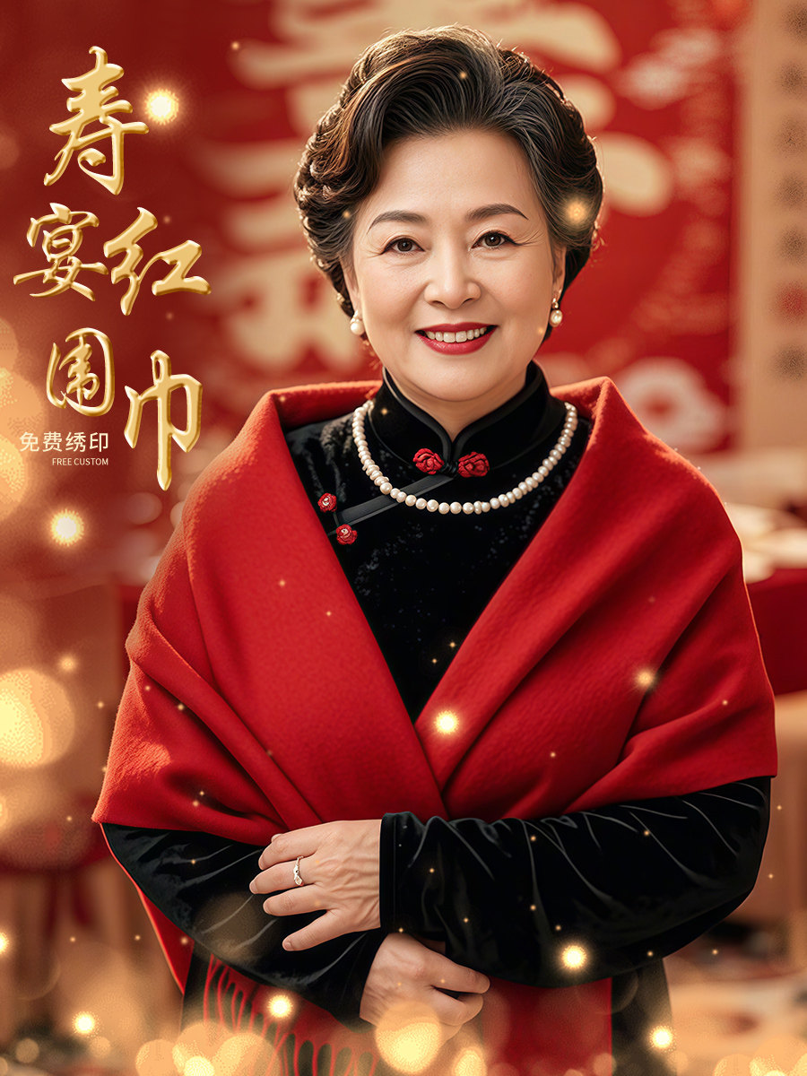 中国红围巾定制logo刺绣企业公司年会庆典贺寿婚礼大红色围脖披肩