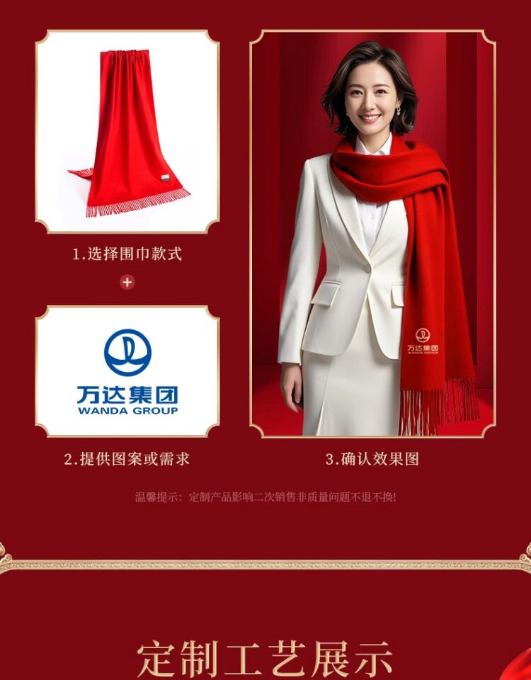 年会红色围巾定制印logo刺绣公司企业开业庆典聚会中国红羊绒围脖