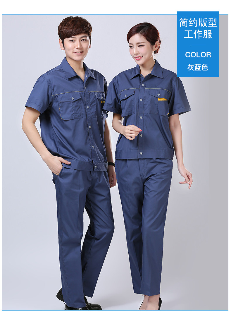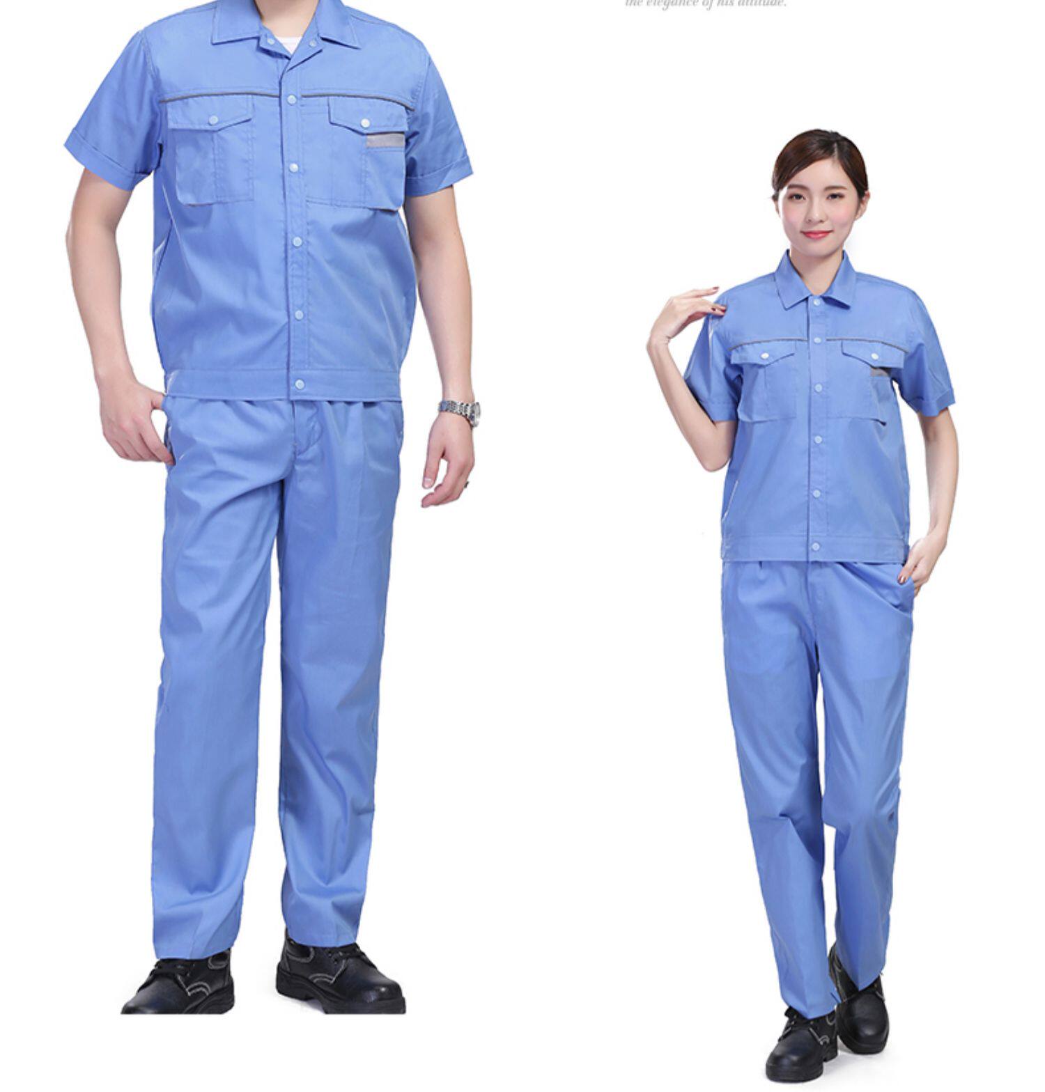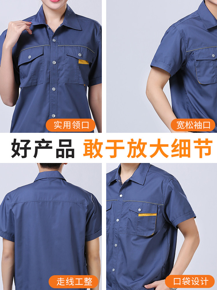 夏季薄款半袖建筑汽修厂工作服短袖套装仓储车间男女款劳保服上衣