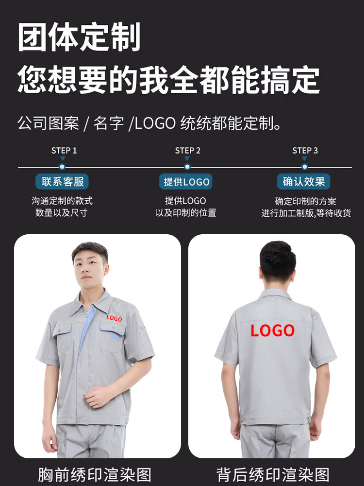 工作服夏季套装短袖男工程服劳保服工服定制男女车间工地汽修上衣