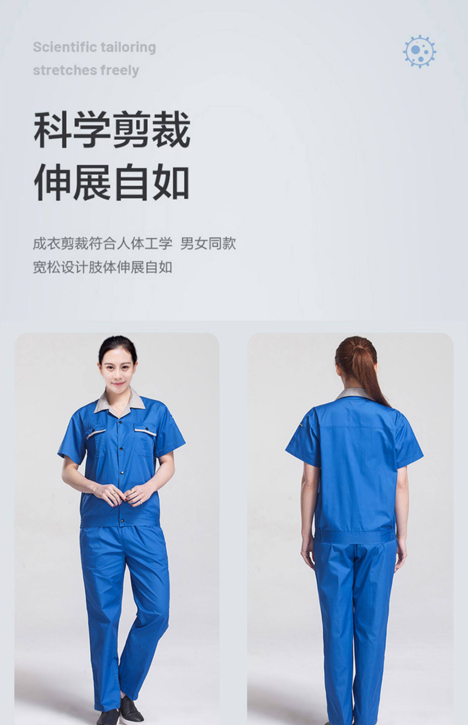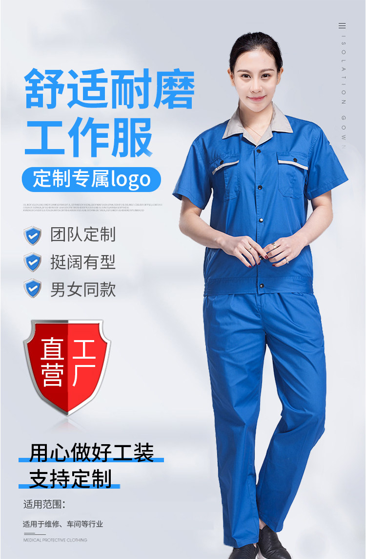 新款特价夏季工作服套装男女厂服工装劳保服工程服蓝色汽修服维修